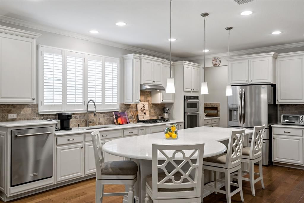 Luxurious Living in Del Webb’s Over 55+ Active Adult Community of Union Park! Discover this stunning 3 Bedroom, 2 Bath Home Plus Study and Sunroom, featuring OVER $120K in UPGRADES ~ including a Custom 32 ft. x 13 ft. Outdoor Covered Living Area set on a private interior lot! This exquisite 1 Story home combines high end finishes with unparalleled functionality. Enjoy the seamless flow of an open floorplan adorned with rich maple wood floors, plantation shutters, crown molding, trayed ceilings and natural light. Luxury Kitchen features Oversized Quartz Island with Room for Counter Stools, End Cap Shelves for Cookbooks or décor, Upgraded Cabinets, Gas Cooktop, KitchenAid Stainless Appliances Oven, Microwave, Convection Oven, Dishwasher, Generous Pull Out Drawers. Quartz Counters with Stone Tile Backsplash, Butlers Pantry and Walk in Pantry. A Custom Stone fireplace anchors the Living Area connecting the Dining, Kitchen, Living and Sunroom areas perfect for entertaining or leisurely afternoons. The primary Suite offers a retreat with an oversized shower with seat, extended Vanity with dual sinks and Exotic Granite Countertops, and a spacious closet. Outdoors unwind on your expansive 360+ Sq. Ft. Custom Covered stained concrete Outdoor Living and Patio with sunshades, ceiling fan, surrounded by a private tranquil backyard. Study at Entry with French Doors. Secondary Bedrooms Split from Primary Suite Share Bathroom with Exotic Granite Vanity. Mud Room at Garage Entry. Utility Room features full size Washer and Dryer Area. Benefit from Del Webb’s Resort Style Amenities including Swimming, Pickleball, Tennis, Yoga, Walking and Biking Trails, Activity Clubs. Incredible location, just minutes from Retail, Shopping, Costco, HEB, Frisco, Prosper and more.