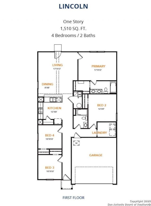 MLS# 1934661 - Built by NHC - Apr 2026 completion! ~ The Lincoln Plan from our Liberty Series offers the perfect combination of efficiency, comfort, and value. This single-story home features 4 bedrooms, 2 bathrooms, a 2-car garage, and 1,510 square feet of thoughtfully designed living space. Upon entering, youll find three secondary bedrooms, a full-size bathroom, and a conveniently located laundry room. The heart of the home is the open-concept kitchen, which overlooks the dining area and spacious family room, making it perfect for hosting or everyday living. Toward the back of the home, the primary suite provides a private retreat, complete with an ensuite bathroom. Access to the primary suite is conveniently located just off the living room, ensuring privacy and easy access.