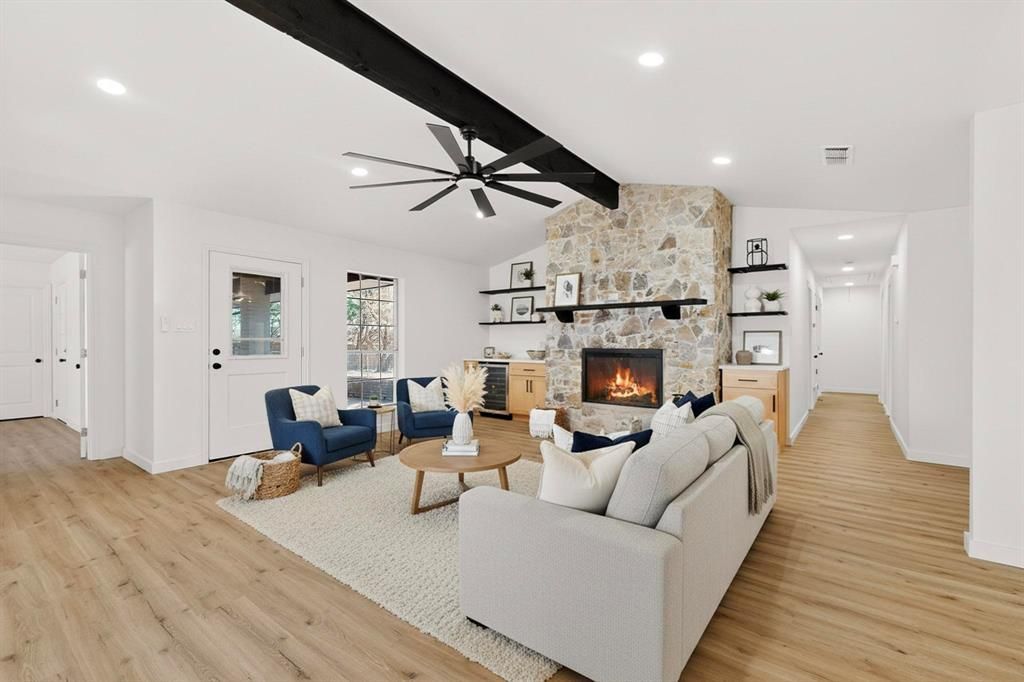 Completely remodeled and move-in ready, this stunning home is located in the sought after community of Colonial Estates and sits on a desirable corner lot. Thoughtfully updated from top to bottom, this spacious residence offers 5 full bedrooms and 3 full bathrooms, including a private guest suite with its own full bath. Perfect for multigenerational living or visiting guests. Major improvements provide peace of mind, including updated plumbing and electrical, all new interior and exterior paint, new flooring throughout, and a transferable foundation warranty. The beautifully redesigned kitchen is the heart of the home, featuring a large island, gas stove, pot filler, and ample cabinetry, all opening to both a formal dining area and a cozy breakfast nook. The inviting living space is anchored by a dramatic floor to ceiling fireplace, creating a warm and stylish focal point.With its modern upgrades, functional layout, and prime location in Colonial Estates, this home offers the perfect blend of comfort, design, and convenience.