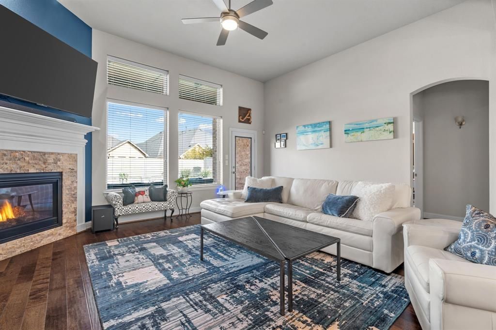 Experience resort style living in this stunning 4 bedroom, 4 bath David Weekley home, meticulously maintained and thoughtfully upgraded for comfort, style, and effortless entertaining.The first floor offers a beautifully flowing layout with a dedicated home office featuring custom built ins, formal dining, and a true chef’s kitchen equipped with premium Viking appliances (refrigerator conveys). Stylish custom barn doors lead to the pantry, and additional under-stair storage adds everyday convenience. The spacious laundry room includes custom cabinetry and stacked LG ThinQ washer and dryer. Tucked down a private hallway, a secondary bedroom and full bath provide the perfect space for guests, while the serene primary suite offers a peaceful retreat complete with a custom closet you have to see to believe.Upstairs features oversized bedrooms each with private baths, a large open loft ideal for a game room or playroom, an expanded workshop space, and additional walk-in attic storage.The backyard is the true showstopper—featuring a breathtaking saltwater pool with tanning ledge and spa, an expanded covered patio perfect for entertaining, and low-maintenance pet-ready turf creating a private oasis right at home.