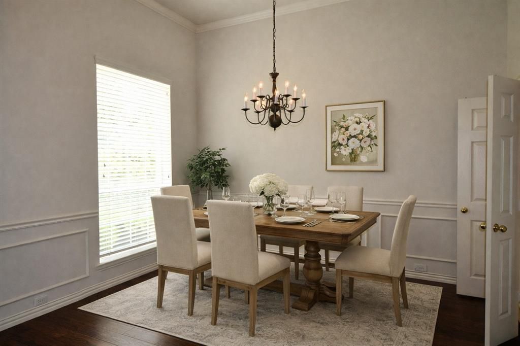 Beautifully maintained residence located in a highly sought-after community and ideally positioned on a quiet interior street. This thoughtfully designed floor plan offers exceptional comfort and functionality, with all bedrooms situated on the main level and a roomy upstairs gameroom located above the garage—perfect for a media room, playroom, or additional living space. Upon entry, warm engineered wood flooring flows throughout the main living and dining areas, creating an inviting atmosphere for both everyday living and entertaining. The open-concept design leads into a generously sized kitchen that blends style and practicality. Features include a large center island with additional food prep and seating space, gas cooktop with distinctive brick accent, Corian countertops, abundant custom cabinetry with convenient pull-out lower drawers, and a walk-in pantry, a source for excellent storage. The private primary suite has sitting area, is quietly tucked at the rear of the home and offers a relaxing retreat. The primary bath features a separate shower, double vanities, soaking tub, and a spacious walk-in closet. Secondary bedrooms are well-proportioned and versatile, ideal for family, guests, or a dedicated home office. Additional highlights include a separate laundry room with added storage, an extended covered patio with ceiling fans for comfortable outdoor living, and a board-on-board privacy fence that enhances the backyard setting. The roof was replaced in 2023, providing added peace of mind. Original carpet - seller has priced home accordingly. Situated in the desirable Waterford Crossing community, residents enjoy scenic walking trails and a community pool. Conveniently located near shopping, dining, and major commuter routes, this home offers an exceptional combination of lifestyle, comfort, and location.
