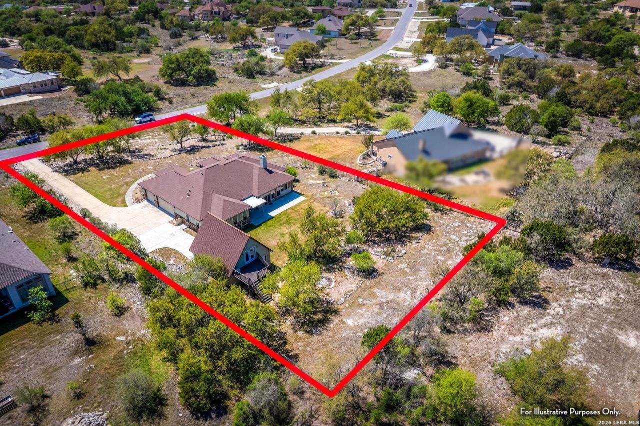 Rare opportunity to assume an ultra-low 2.25% VA loan! Welcome to an exceptional hill country retreat in the prestigious community of Vintage Oaks in New Braunfels. Perfectly positioned on a private 1-acre homesite, this custom home blends luxury, functionality and breathtaking natural surroundings. Designed for both comfort and entertaining, the open-concept layout features a dramatic floor-to-ceiling stone gas fireplace, souring 9-foot ceilings with tray accents, and expansive windows capturing serene backyard views. The chefs kitchen is a true showpiece, offering custom cabinetry, 36" gas cooktop with 5 burners and griddle, seamless undermount sink, built-in oven and microwave, beautiful granite countertops and breakfast seating, creating the perfect gathering space for family and guests. The private owners retreat is thoughtfully situated in its own wing, complete with direct access to the sunroom and a luxurious spa-like bath with dual vanities, garden tub, and oversized walk-in shower. Additional highlights include a dedicated office, two secondary bedrooms with walk-in closets and Jack-and-Jill bath, stunning sunroom, fully fenced backyard, two HVAC units and tankless water heater. This property truly stands apart with 5 garage spaces, including a two-car detached garage topped by a spacious air-conditioned flex room offering endless possibilities for entertainment, hobbies, or guests. Residents of Vintage Oaks enjoy world-class resort amenities including multiple pools, a lazy river, tennis and sports courts, miles of scenic walking trails, fitness center, and a community wine room, all just minutes from downtown New Braunfels and conveniently located between San Antonio and Austin.