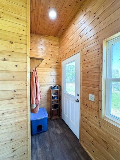 If you’ve ever dreamed of owning a small rural homestead, this charming turn-key property offers the perfect opportunity. Packed with character and endless potential, the property features a thoughtfully designed tiny home with a spacious one-bedroom, one-bathroom layout. Inside, you’ll find an open living area highlighted by beautiful pine walls and ceilings, while the tall ceilings create a bright and welcoming atmosphere. The home also includes a galley-style kitchen with all appliances and a full-size washer and dryer area, making it both functional and comfortable for everyday living. Outside, the property truly shines. Mature trees provide privacy and help block the view of neighboring homes, while the land backs up to an open field where you can enjoy peaceful sunrises and wide-open country views. Improvements include an oversized carport, a Conex storage container, and a tack room that provides excellent storage for equipment or supplies for your outdoor animals. The land is fenced and cross-fenced to perfection, creating multiple areas ideal for livestock or small homestead animals. One section is dedicated to a flourishing orchard area complete with established trees, a water well, and raised garden beds. Another space is designed with chickens in mind, featuring a charming coop that matches the home and is both stylish and fully functional. Though modest in size, this property truly packs a punch with its energy efficiency, numerous upgrades, and authentic homestead lifestyle.