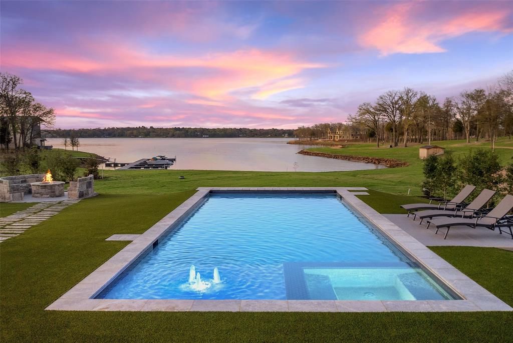 Just over an hour from Dallas, this newly constructed, Jason Luther Architects designed home in the coveted Long Cove community offers a refined, modern expression of luxury lake living. This striking 5 bedroom, 6,780 SF residence is filled with natural light and framed by sweeping views of Cedar Creek Lake. A stunning open-plan chef’s kitchen flows into the great room, complemented by a dedicated wine room and bar that open seamlessly onto the screened terrace—perfect for effortless indoor–outdoor entertaining.The pool, spa, fire pit, basketball hoop, and pickleball court create a private resort-style setting on this spacious property, offering endless recreation and relaxation against the serene lake backdrop.The luxurious primary suite features an open fireplace and expansive lake views, with an additional guest suite conveniently located on the main level. A formal dining room, private office, and fully equipped gym complete the first floor.Above the garage, a separate guest suite—accessed by its own staircase—includes a TV room, kitchenette, bedroom, and full bath, providing ideal accommodations for extended stays. Upstairs in the main home, two bunk rooms and a generous game room with lake views offer the perfect retreat for family and guests.Located perfectly on the open water within Long Cove’s 1,200-acre community, owners enjoy access to two community pools, a woodland adventure park, pickleball, tennis, and basketball courts, a 9-hole golf course, driving range, endless wooded trails, a bike hut, stocked fishing ponds, beach volleyball and bocce ball along full access to concierge style amenities—boat valet, docks, curated events, and seasonal experiences—making second home living simple, elevated, and endlessly enjoyable. Weekends here transform into something truly magical.