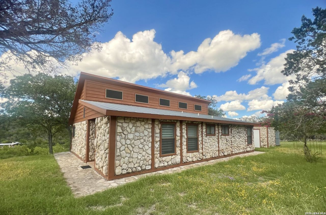 An extraordinary opportunity to own 9.51 pristine acres on the North Fork of the Guadalupe River, offering a rare blend of live water, privacy, and panoramic Hill Country beauty. Located in the Riverside Subdivision, this exceptional property combines a beautifully updated residence with the contiguous bluff-top parcel showcasing sweeping river valley views. The thoughtfully updated 1,334-square-foot residence features 2 bedrooms and 2 bathrooms, designed for relaxed country living. The deck overlooks the waters below, creating the perfect setting for morning coffee, sunset gatherings, or peaceful evenings under the TX sky. Importantly, the residence is positioned on elevated ground above the riverbank, providing separation from river flow and offering peace of mind. Access to river frontage is from the Riverside HOA entrance. The adjoining lot offers dramatic bluff views, additional river frontage, recently drilled well and potential build sites-ideal for constructing a custom luxury river estate while maintaining the existing home as a guest retreat or income-producing property. This is a rare chance to secure a premier live-water estate in the heart of the TX Hill Country!
