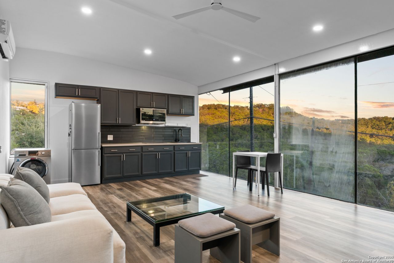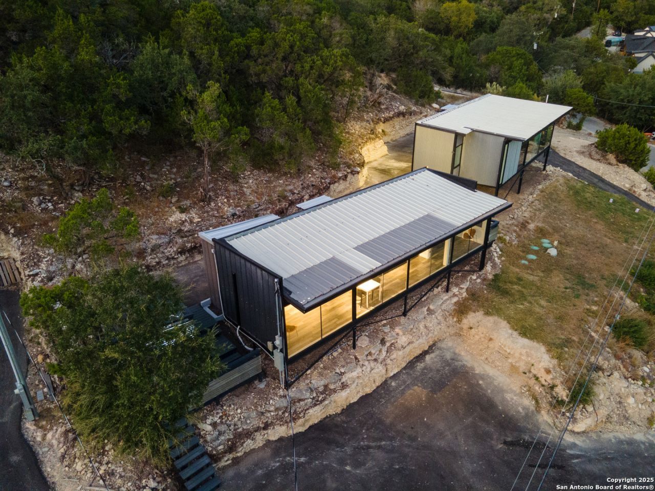 Truly one of a kind! This unique property features two separate modern I-beam metal homes, each approximately 567 sq. ft., located in the heart of Canyon Lake, Texas with lake access. Both units offer a sleek and functional layout with 1 bedroom, 1 full bath, and an updated electric kitchen. Each home showcases beautiful vinyl plank flooring throughout and large windows overlooking the stunning Hill Country views of Comal County. Whether youre searching for an investment opportunity, a short-term rental (Airbnb/VRBO), or the perfect private getaway, this property is a true gem. Dont miss your chance to own this exceptional piece of Canyon Lake-schedule your showing today!