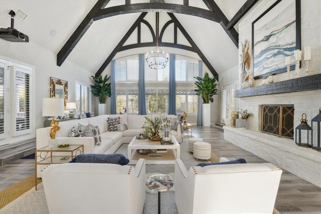 Extraordinary Heath estate offering over 9,200 square feet of refined living, where luxury, lifestyle, and value come together seamlessly. Situated on a 2.86-acre homesite, the property showcases impressive curb appeal with a circular drive, private motor court, and tranquil neighboring pond views, creating both privacy and a grand first impression. This meticulously updated 1.5-story residence features high-end finishes and exceptional craftsmanship throughout. The gourmet kitchen is designed for both daily living and entertaining, complete with commercial-grade appliances and expansive prep and gathering space. The home offers four bedrooms, including two expansive primary suites, each with a private sitting area and spa-inspired en-suite bath, ideal for multi-generational living or extended guests. Upstairs, a one-of-a-kind Disney Castle–themed great room provides a versatile space for recreation, study, or relaxation, adding a unique and memorable element to the home. The outdoor living experience is truly resort-inspired, featuring a semi-covered pool and spa, multiple entertaining areas, outdoor kitchen, fire features, sand volleyball court, in-ground trampoline, zip line, and disc golf. Dual gated entries lead to separate garage wings, including a 4-car garage plus an additional 2-car garage currently utilized as a 640 sq ft climate-controlled recreation space, offering flexibility for a gym, studio, or additional living area. Please ask about the Features List for a complete overview of this exceptional property.