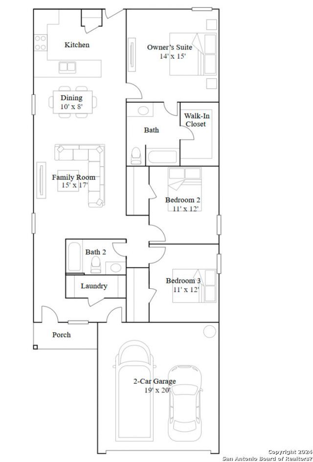 The Idlewood - This single-level home showcases a spacious open floorplan shared between the kitchen, dining area and family room for easy entertaining, along with access to an outdoor space. An owners suite enjoys a private location in a rear corner of the home, complemented by an en-suite bathroom and walk-in closet. There are two secondary bedrooms at the front of the home, ideal for household members and overnight guests. Estimated Completion April 2026. The completion date, prices and features may vary and are subject to change. Please verify with Lennar directly. Photos are for illustrative purposes only.