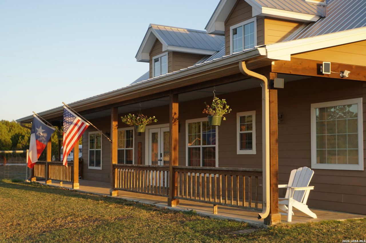 Discover peaceful Hill Country living in this beautifully maintained home on 1.15 private acres, thoughtfully cut from a larger tract. so the property feels wonderfully open and secluded-far more expansive than its size suggests. Located just 3 miles from the Historic Blanco Courthouse and charming Blanco Square, this home sits in the heart of some of the most desirable Hill Country communities, with quick access to Wimberley, Johnson City, Henly, and Dripping Springs. Scenic drives, rolling countryside, and endless local attractions surround you. Inside, the home shines with brand-new laminate wood flooring throughout the home. High ceilings and an open flow create an inviting space for entertaining. The floor plan is ideal: the primary suite is privately situated on one side of the home, while the two secondary bedrooms are on the opposite side, and a spacious study with built-in cabinetry sits near the entry, offering the perfect work-from-home or hobby space. Every room feels airy and filled with natural light. Car lovers, boat owners, and hobbyists will appreciate the extra-deep 800 sq. ft. garage, designed to accommodate large vehicles. This is a perfect place to park your RV while not traveling. Enjoy Hill Country mornings and evenings from the covered front and back porches, perfect for sunrises, sunsets, or stargazing under Blancos famously dark skies. This is a wonderful setting for families, retirees, or anyone craving a slower pace and a peaceful retreat from the city.