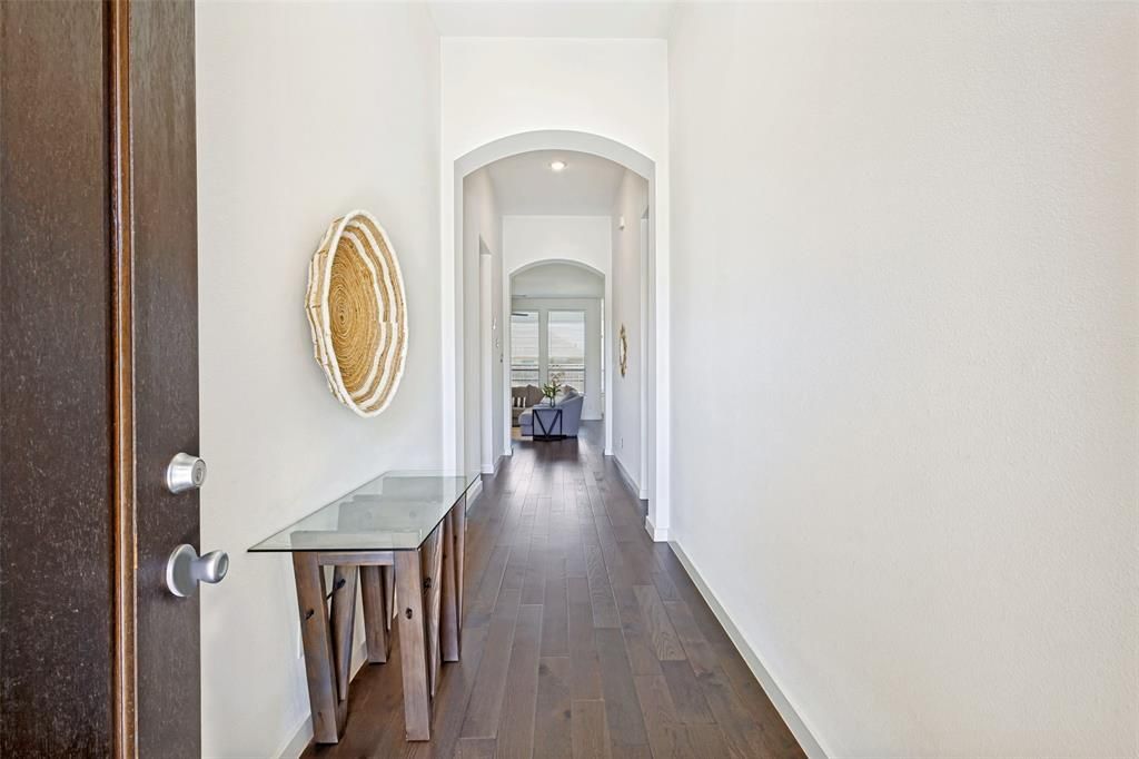 This stunning 4-bedroom, 3-bath Highland home in highly sought-after ArrrowBrooke offers the perfect blend of style, comfort, and functionality. From the moment you enter, you’re welcomed by elevated ceilings, abundant natural light, and rich hardwood floors that flow throughout the main living areas.The open-concept design is ideal for modern living, featuring a spacious living room with a beautiful stone fireplace that seamlessly connects to the kitchen and dining area. The chef’s kitchen is a true centerpiece with a massive island, upgraded cabinetry, quartz countertops, and stylish backsplash—perfect for entertaining or everyday living.The private primary suite offers a relaxing retreat with tall ceilings, dual vanities, a soaking tub, separate shower, and a large walk-in closet. Three additional bedrooms with walk-in closets provide flexibility for guests, family, or a home office.Enjoy outdoor living with both front and back covered patios—ideal for morning coffee or evening relaxation. Additional features include a tankless water heater and electric vehicle charging station.Located in the award-winning ArrowBrooke community, residents enjoy resort-style amenities including resort-style pools with a lap lane and bubblers, a pergola near grills, and a playground, fitness center, parks, trails, built-in ping-pong table, a cornhole set, and sitting tables and so much more. Zoned to Denton ISD with Sandbrock Ranch Elementary schoolIdeally situated near shopping, dining, and major highways, this home offers the perfect combination of peaceful suburban living and easy access to everything you need.The new Universal Studios, HEB, Children’s hospital, Baylor Hospital and the PGA are all within 15 minutes. Listed nearly one hundred thousand less than new builds. Schedule your showing today—this one won’t last!