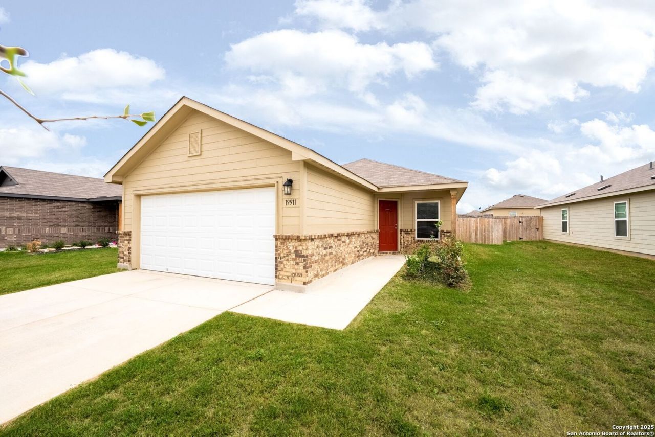 Price Reduced! Discover incredible value in this nearly brand-new one-story home in the growing Saddleridge community in Lytle! Why wait months for new construction when you can move right into this beautiful home thats barely a year old? Featuring 3 spacious bedrooms and 2 full bathrooms, this home is the perfect blend of style, comfort, and convenience, an ideal starter home or smart investment opportunity. Step inside to an open, airy floor plan with luxury vinyl flooring throughout, designed for easy living and effortless entertaining. The modern kitchen shines with granite countertops, stainless steel appliances, and abundant storage, opening seamlessly to the dining and living areas so you never miss a moment with family or guests. Enjoy the privacy of a split master bedroom with a sleek ensuite bath offering a walk-in shower and a generous walk-in closet. The additional bedrooms are well sized and versatile. Outside, youll love the level backyard, a clean slate ready for weekend barbecues, a play set, or your dream garden. With a two-car garage, plenty of natural light, and peaceful surroundings, this home is move-in ready and waiting for its next owner. All of this just minutes from shopping, restaurants, and major highways, offering a quick and easy commute to downtown San Antonio. Skip the wait, skip the hassle, your new home in Saddleridge is ready now!