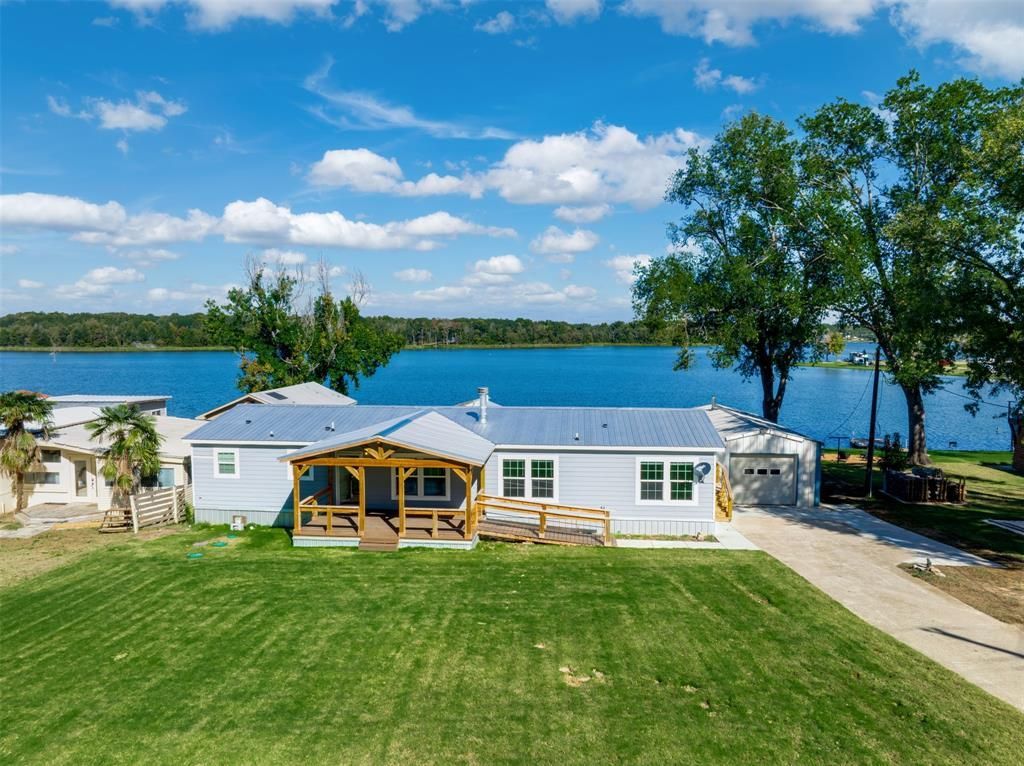 Beautiful 2024 Cavalier Manufactured Home on two waterfront lots on Lake Palestine! Located on a peaceful fishing bay, this property offers the perfect blend of relaxation and recreation with approximately 100 feet of shoreline and a level to gently sloping yard leading to the water. A concrete driveway leads to home with 1,845 sq. ft. of living space, in excellent condition and ready for lake living! The spacious open floor plan features a large living area with picture windows overlooking the lake and a beamed ceiling and gas fireplace, creating a warm and inviting atmosphere. The kitchen is well-equipped with refrigerator, stove, microwave, vent-hood, dishwasher, and a center island with electrical outlets—ideal for meal prep and entertaining. The adjoining dining area also overlooks the lake, providing beautiful views while you dine. Access the covered back porch with steps leading to the back yard and dock . A highlight of the property is the 20' x 38' shop-garage—perfect for storing boats, lake toys, or vehicles—and includes a wood-burning stove for year-round comfort. New boat dock & fishing pier! With short-term rentals allowed, this property offers both personal enjoyment and excellent income potential!
