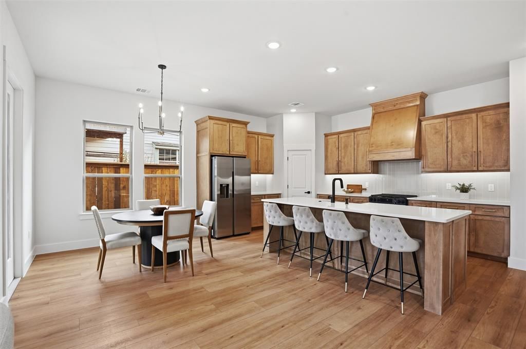 Beautiful new construction home located in an established Dallas neighborhood experiencing revitalization with nearby new builds. This thoughtfully designed home features 4 bedrooms and 3 full bathrooms with a functional layout offering 3 bedrooms and 2 full baths downstairs, plus a private upstairs bedroom with full bath ideal for guests, office, or flex space. The open-concept floor plan includes a spacious living area that flows into the kitchen with a large island, quartz countertops, custom cabinetry, stainless steel appliances, and modern finishes. The primary suite offers dual sinks and a walk-in shower. Additional highlights include wood flooring, designer fixtures, fenced backyard, covered patio, tankless hotwater heater, and attractive brick and stone exterior. Conveniently located minutes from Brook Hollow Golf Club and Dallas Love Field Airport, with easy access to major highways, shopping, and dining.