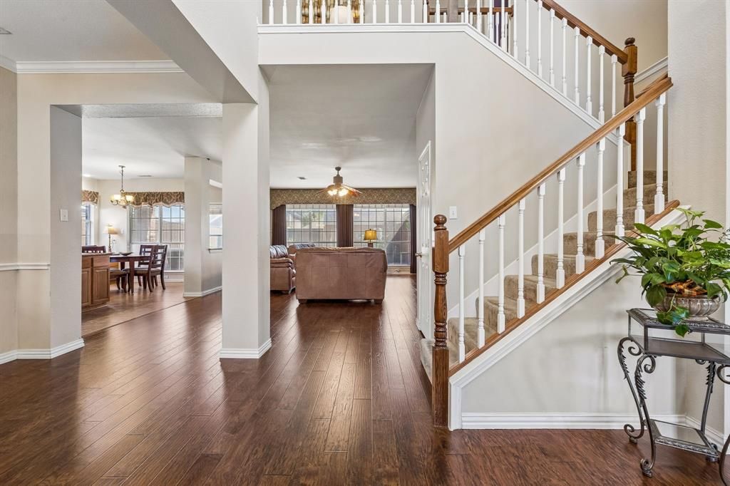 From its spacious two-story layout to a backyard oasis complete with a pool and spa, this beautifully maintained 4-bedroom, 3-bathroom home in Rowlett offers a comfortable and functional place to call home.Inside, wood floors and neutral tones create a warm, inviting atmosphere. The main living room features a fireplace that anchors the space, while large windows fill the home with natural light. The kitchen is designed for both everyday living and entertaining, complete with granite countertops, stainless steel appliances, a kitchen island, ample cabinetry, and a charming breakfast nook.The home offers a functional and flexible layout with a formal living area and dining room at the front of the home. Downstairs also includes a secondary bedroom, a full bathroom, and a conveniently located laundry room. Upstairs, you’ll find two additional bedrooms, a full bathroom, a spacious game room, and a generously sized primary suite featuring an ensuite bathroom and walk-in closet.Step outside to enjoy the private backyard oasis, complete with a storage shed and plenty of space for outdoor entertaining. In addition to the 2-car garage, the property also includes a covered carport for extra parking.Recent improvements include fresh paint throughout the house (March 2026), a roof replacement (2024), new gutters (2024), a freshly restrained fence (2024), and pool filter pump and all pool plumbing replaced (2023). Thoughtfully maintained and move-in ready, this home combines comfort, style, and a fantastic Rowlett location, convenient to shopping, dining, parks, and major roadways for easy commuting.