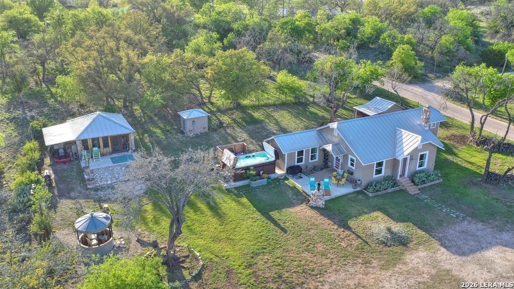 Embrace the freedom of small-town life with this charming 1938 cottage on 3.79 acres in Harper, TX-just a short walk to Hwy 290 for easy access to town or a quick trip into Fredericksburg... This 2 bed, 2 bath home has an extra studio that can be used as a 3rd bedroom or office. Thoughtful updates include a primary suite, party barn, and a detached laundry shed. Recent improvements include a new roof, fresh exterior paint, renovated kitchen and baths, updated plumbing, and windows-all while preserving vintage charm with original hardwood floors, built-ins, antique doorknobs, and a cozy fireplace. The fully fenced property offers two gated entrances and a livestock enclosure-perfect for chickens, goats, cows, or horses. Mature trees, fruit trees, and wildflowers add to the natural beauty. A standout stone outbuilding equipped with a mini-split is ideal for a studio, guest house, or party barn. Peaceful, self-sufficient living with modern comfort-just waiting for your homestead dream to begin.