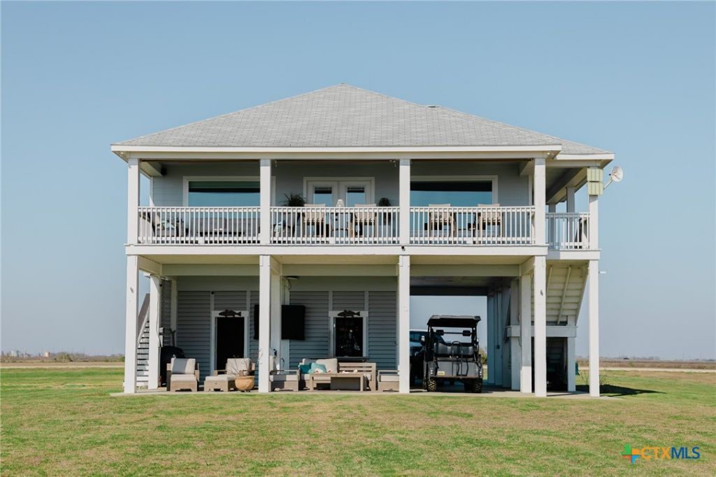 Coastal dreams start and end here! This stunning WATERFRONT home on approximately one acre offers breathtaking views of the bay and the ultimate coastal lifestyle. Enjoy your own 150-foot T-head pier, complete with electricity and green fishing lights that bring the water to life after sunset. A bulkhead and jet ski float lift add to the convenience, while a cozy fire pit invites you to unwind by the waters edge on cool evenings. Step inside this coastal-inspired 3-bedroom, 2-bath home, where natural light floods every space. The kitchen offers panoramic 180-degree water views, framed by impact-resistant windows that maximize both beauty and durability. Downstairs, a storage and tackle room is perfectly designed for all your fishing gear, and theres ample space for both a bay boat and an offshore boat and more. Take a leisurely stroll to the Waypoint Landing community pier, or launch your boat just minutes away at Jensen Point Boat Ramp or the Palacios Harbor. Plus, no city taxes! Located along the shores of Matagorda Bay, this home is just a 20-minute boat ride to Port OConnor, giving you easy access to world-class fishing and coastal adventures. The charming town of Palacios, TX?known as the City by the Sea?welcomes you home to waterfront living at its finest!