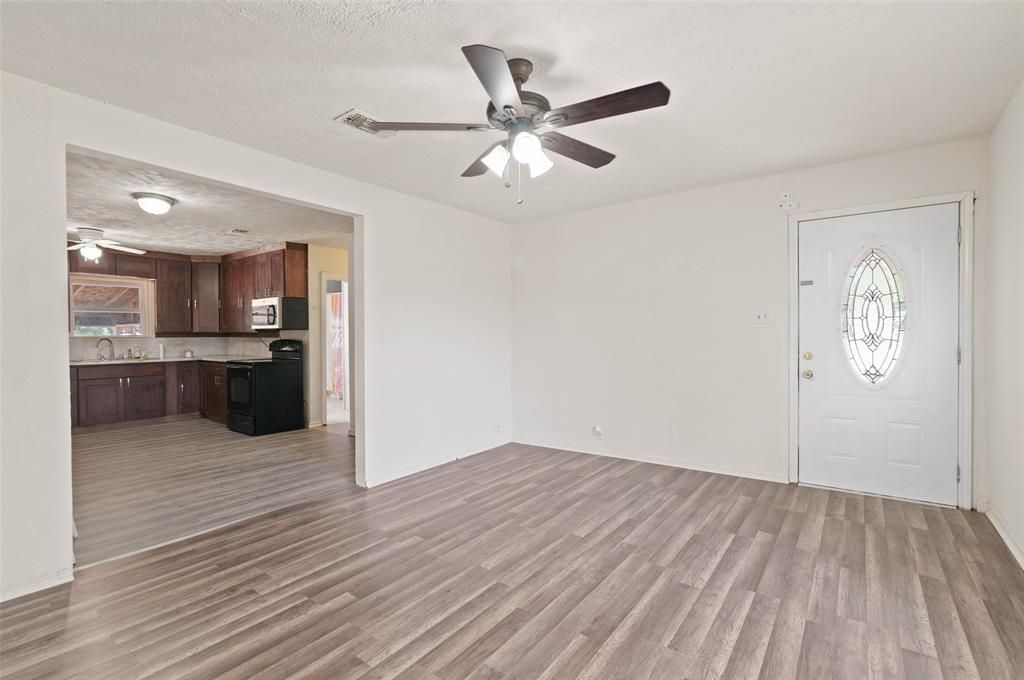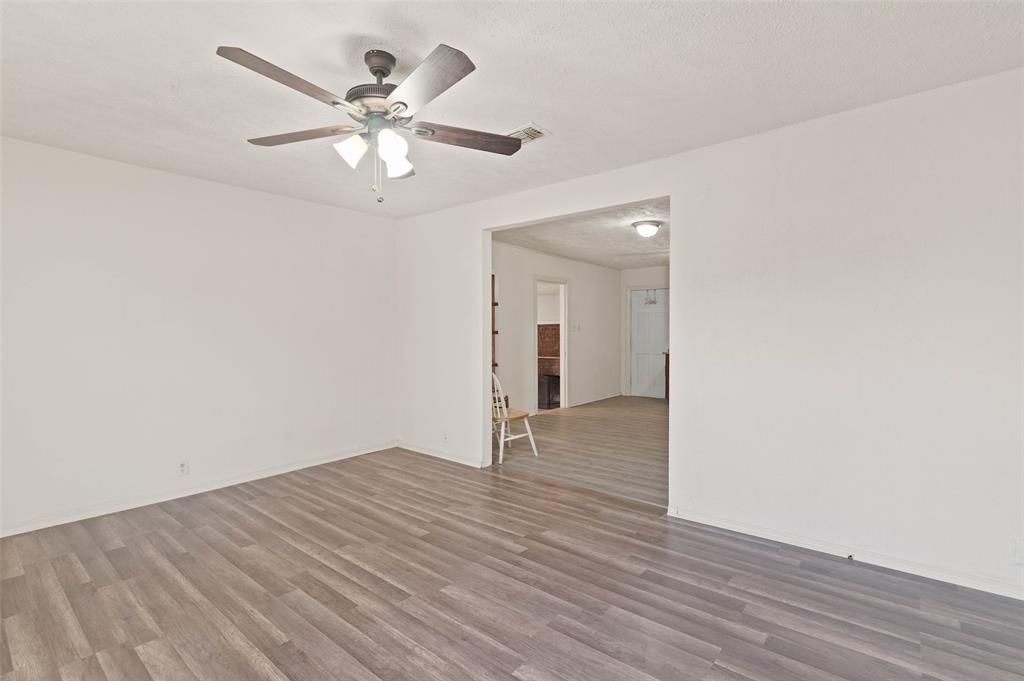 This charming 3-bedroom, 2-bath, home offers a tranquil retreat from the bustle of city life. Stepping inside, you're greeted by an open-concept living area that seamlessly connects the dining space and the well-appointed kitchen. Natural light floods in through large windows, highlighting the vinal floors and giving the space an airy and inviting feel. Outside, the property offers a wealth of outdoor possibilities. The expansive backyard is a canvas for outdoor activities, gardening, and relaxation. A detached covered structure provides both parking and additional storage space.