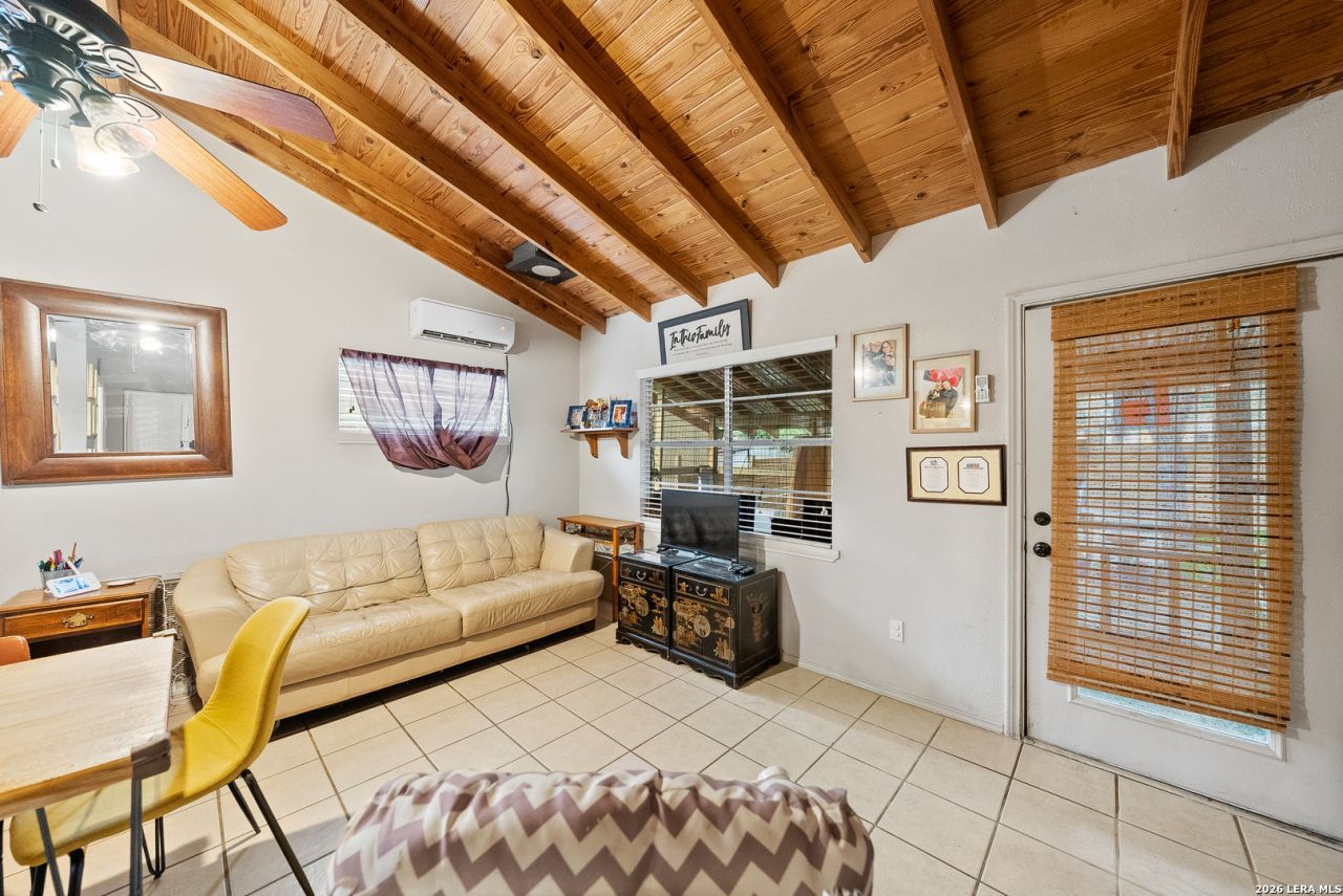 More photos to coming soon! Welcome Home to 335 Flatrock Drive-an inviting 1.5-story, 2-bedroom, 2-bath home featuring a thoughtfully designed layout in the desirable Canyon Springs Resort subdivision. From the moment you arrive, the charm is undeniable. A gorgeous flagstone walkway guides you toward the entrance to the home, creating a warm and welcoming first impression. Lush landscaping surrounds the home, and the enclosed patio offers a peaceful sanctuary filled with vibrant plants-your own private retreat for relaxing or entertaining. Inside, this charming home showcases unique, customized features throughout, beginning with a floating aspen wood countertop paired with a stone sink in the downstairs bathroom. The kitchen continues the rustic appeal with an aspen wood high top bar and a beautifully crafted veneer-stone backsplash in soft gray and beige tones. Designed with a warm farmhouse aesthetic, the first floor offers ceramic tile in most living spaces and laminate wood flooring in the bedroom. Upstairs, the bedroom features cozy carpet, while the bathroom includes durable tile flooring, completing the homes inviting and well-appointed layout. The aluminum roof provides longevity and low maintenance, while the front privacy fence adds comfort and seclusion. For RV owners or guests, the property includes a full RV hookup station equipped with electricity and water, making hosting or travel preparation effortless. The backyard offers additional outdoor space for gatherings along with a storage shed and an unfinished bonus room attached to the back of the home. This flexible space is brimming with potential-perfect for transforming into an additional bedroom, office, guest suite, workshop, or creative studio tailored to your needs. Set just minutes from the sparkling waters of Canyon Lake, this home offers charm, versatility, and a setting that embraces the Texas Hill Country lifestyle. Discover the comfort and endless possibilities waiting for you.