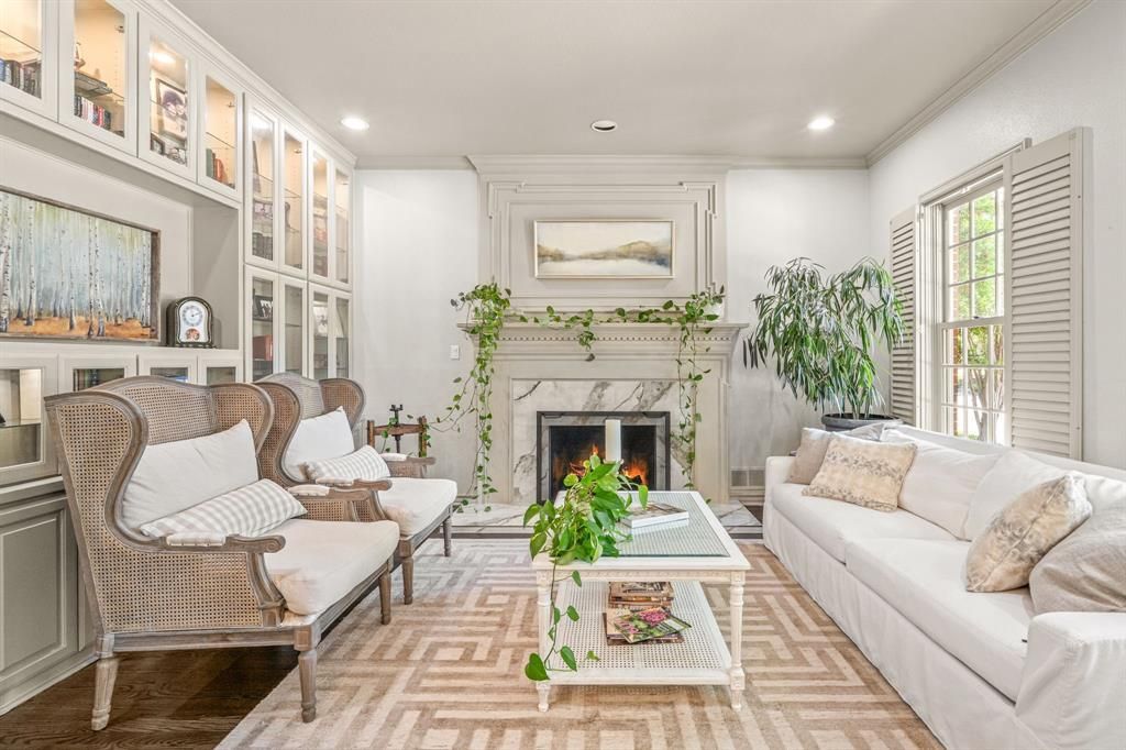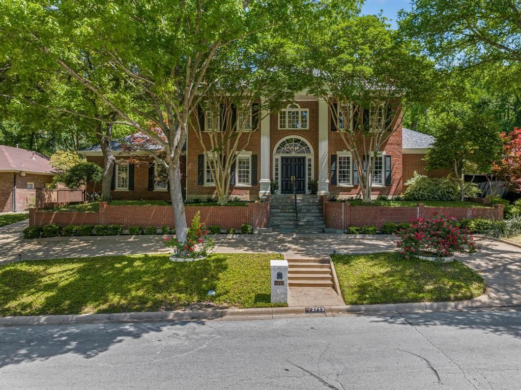 Nestled in the prestigious Overton Woods neighborhood, this stately Georgian-style residence offers timeless architecture paired with modern luxury. Updated in 2023–2024, the home is surrounded by lush landscaping, mature trees, and a circular drive that sets an impressive tone from the moment you arrive. A grand two-story foyer gracefully separates the formal living and dining areas. The family room opens to the kitchen and breakfast nook, creating a comfortable and seamless flow between the spaces, with a conveniently located half bath for guests. The kitchen features a breakfast bar, central island, walk-in pantry, and a coffee and wine bar complete with a sink and wine refrigerator. The spacious primary suite is located on the main level with views of the backyard and direct patio access. The light-filled en-suite bath boasts dual sinks, a separate soaking tub, walk-in shower, and dual closets. Upstairs, four bedrooms are thoughtfully arranged with two Jack-and-Jill bathrooms, while the third floor offers a versatile bonus room ideal as a game room, office, or additional living space. Step outside to a serene backyard retreat, where a covered outdoor living and grilling area—featuring two bar tops—overlooks a beautifully manicured yard with lush turf and a private putting green, ideal for both relaxation and entertaining. Additional highlights include a generous utility room, half bathroom, mosquito misting system, new class 4 impact resistant roof and gutters in 2023, a two-car garage, and a separate covered parking area accommodating two additional vehicles. Zoned to highly acclaimed Overton Park Elementary and minutes from premier shopping, dining, entertainment, and major thoroughfares, this exceptional home offers both elegance and everyday convenience.