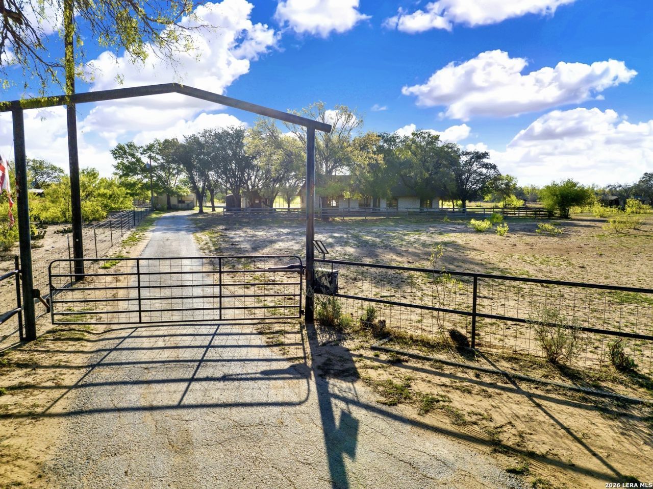 Beautiful 10-acre ag-exempt property in Devine offering the perfect blend of country living and functionality. This 2,037 sq ft home features 3 bedrooms, 2 bathrooms, plus a dedicated office, with an open-concept layout ideal for everyday living and entertaining. Enjoy cozy evenings by the rock fireplace and peace of mind with a one-year-old HVAC system and composition roof. The land is fully fenced and cross-fenced with gated access, making it ideal for livestock or agricultural use. Property includes two pole barns, plus a large barn equipped with septic and a bathroom-perfect for projects, storage, additional workspace or an awesome game room. Water is well-covered with a Yancey water meter and a 200-ft deep well with storage tank for irrigation and outdoor use. Additional features include RV electric hookup and propane gas tank. Owned since 2007 by only the second owners, this property has been well maintained and is ready for its next chapter.