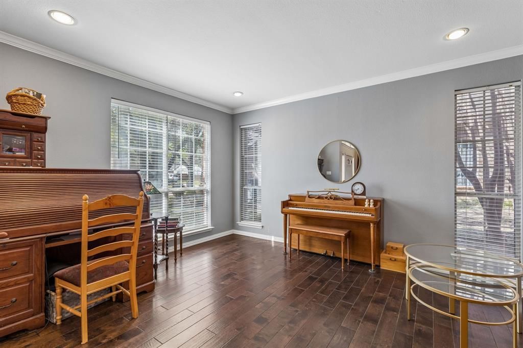 Welcome to 405 Stoneleigh Circle, a spacious and beautifully updated residence offering 5 bedrooms, 3 bathrooms, and approximately 3,292 square feet of thoughtfully designed living space on a generously sized lot. Enhanced with numerous updates, this move-in ready home combines comfort, functionality, and modern style in a highly convenient location with quick access to I-35 and the Little Elm Bridge. Inside, a bright open floor plan creates a seamless flow between living, dining, and kitchen areas while large windows bring abundant natural light into nearly every room. Rich wood flooring extends throughout much of the home, adding warmth and timeless appeal. A distinctive staircase with a landing provides architectural character and a welcoming focal point as you enter. The fully updated chef’s kitchen, features top-of-the-line appliances, French door oven with convection and microwave with oven capabilities, quality cabinetry, and generous workspace designed for both everyday living and entertaining. The open layout keeps the kitchen connected to the main living areas, creating an ideal setting for gatherings or quiet evenings at home. Flexible living spaces include a downstairs bedroom that can easily function as a private office, guest room, or additional sleeping area. A large laundry room with utility sink adds convenience and practicality to daily routines. Step outside to enjoy the expansive backyard with attractive landscaping and a newer stained deck that provides an inviting space for relaxing or entertaining outdoors. The oversized lot offers privacy and room to enjoy outdoor activities while still being close to nearby walking and biking trails. With excellent curb appeal, extensive updates, natural light throughout, and a spacious layout designed for modern living, 405 Stoneleigh Circle presents a rare opportunity for buyers seeking a move-in ready home with style, flexibility, and convenient access to major commuting routes, shopping, and recreation.