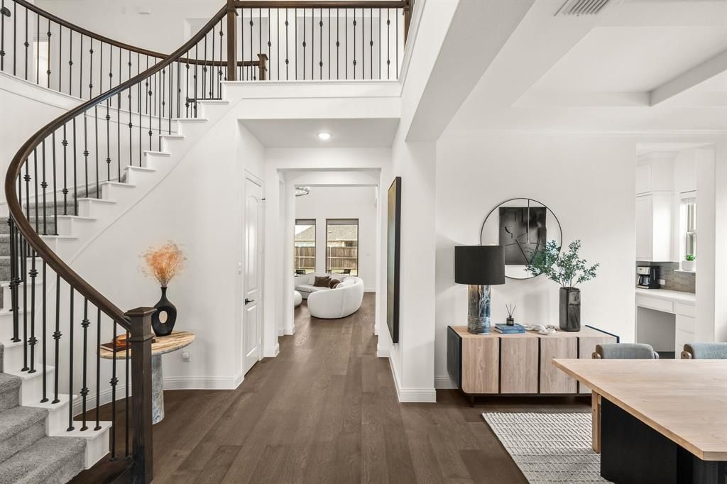 Experience elevated living in this luxury home located in the sought after master-planned community of Wildridge. This beautiful modern, professionally designed home is in one of DFW's top suburbs listed in D Magazine. Situated near the serene beauty of Lake Lewisville, this exceptional 5 bedroom, 4.5 bath home is boasting with a gorgeous tall ceilings, natural light, an open floor plan with multiple living spaces and outdoor entertainment. This modern designer elegance offers both relaxation and comfort throughout the home. From its sophisticated interior with high-end upgrades and attention to details offers a luxurious primary suite with large windows overlooking the gorgeous oversized backyard. The standalone mudroom with a sink is a designer dream. The natural light thoughout the home, designer lighting throughout, spa-inspired bathrooms, large secondary rooms, expansive spaces, media room with entertainment area attached, and secondary rooms with their private retreat add an unparalleled lifestyle. The professionally landscaped home is striking from its first impression, while the covered back porch with fireplace and convenient electric sunshade makes for the ideal ambiance at any time of the day. Every detail of this home reflects the quality and enhances with the perfect balance of being located walking distance to the lake, hiking, fishing, parks, walling paths, amphitheater, 9 hole disc golf course, playgrounds, covered pavilion, pools, elementary school and cabanas, all nestled in this scenic community. Just minutes from Frisco PGA, schools, shopping, dining, DFW airports, make this lakefront area more than a home but a Lifestyle.