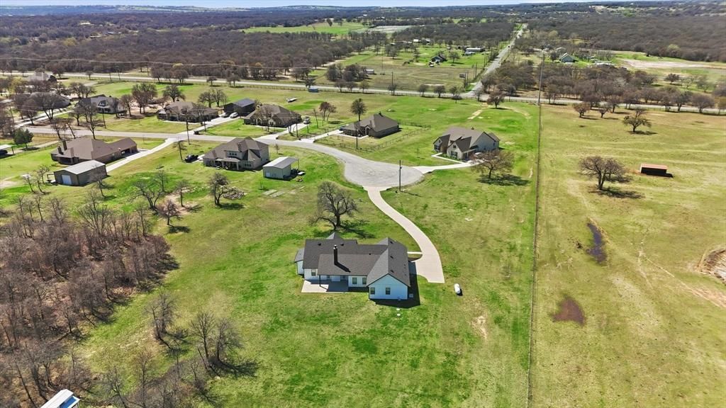 Welcome to 420 Zonaverde Ct -A show stopping modern farmhouse tucked away on a premium cul-de-sac on an over 2 acre lot with breathtaking panoramic views of the rolling countryside & the kind of space & privacy that’s getting harder to find. Set at the back of the neighborhood, this property delivers the best of both worlds: peaceful country living with a polished, like new home that feels custom from the moment you arrive. Inside, the home is light, bright & built for real life & entertaining. You’ll love the open concept layout, soaring ceilings & designer finishes throughout—anchored by a gorgeous kitchen featuring quartz countertops, upgraded fixtures & an impressive island made for gathering. The kitchen is also a dream for anyone who loves to cook or host with a 5 burner gas cooktop, pot filler & a stunning walk in pantry that offers serious storage & organization.The primary suite is a true retreat with elevated touches, including luxury vinyl plank flooring in the primary bedroom & closet & a spa-inspired bath with upgraded finishes & a beautifully tiled walk in shower. Secondary split bedrooms are spacious with walk in closets. The home’s thoughtful details continue throughout—from the mudroom style drop zone to the clean, modern hardware & lighting.Step outside & soak in the setting: extended front covered porch & back patio creates multiple spaces to relax, entertain & enjoy those Texas sunsets. If you’re looking for efficiency this property checks big boxes—plumbed for gas (cook top, fireplace, outdoot grill & an exterior generator connection) & it includes a 500-gallon propane tank. It also has a whole house water purifier & softener system.Even better: NO HOA, plus a private well & septic, giving you more freedom, flexibility & lower overhead.If you’ve been waiting for the perfect combination of style, space & views on one of the best lots in the neighborhood- come experience it in person. The pictures are great… but the feel is even better!
