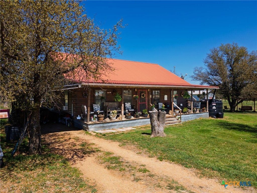We have new photos for Spring 2026! Set up a time for a showing! How about a 2-story, 4/3 log house with 15 acres where you can watch deer and wildlife during the day and plenty of stars at night? You can hunt deer (from the deer stand), dove and feral hogs for your freezer. Cozy up to the wood burning fireplace and contemplate if you want to go off the grid. You can here! Though the primary water source is a community co-op, it has a sustainable rainwater harvest with 5 tanks and a water filtration system. The plumbing to this system is double insulated with heat strips! The NEW water heater and kitchen range are powered by propane. The first floor has a wood floor and has 3 bedrooms and 2 baths. Upstairs, with plenty of storage, is an apartment with its own entrance. There is also a tiny house that needs to be plumbed and finished out. There are 2 storage buildings and a chicken coop. Please see list of items under miscellaneous. The land is completely fenced. The yard with the house is fenced separately. There is also a wet/ dry creek. A great place for kids, birding, a horse ranch, or a bed and breakfast. It's only 7.5 miles northwest of San Saba, a great little Texas town, the Pecan Capitol.