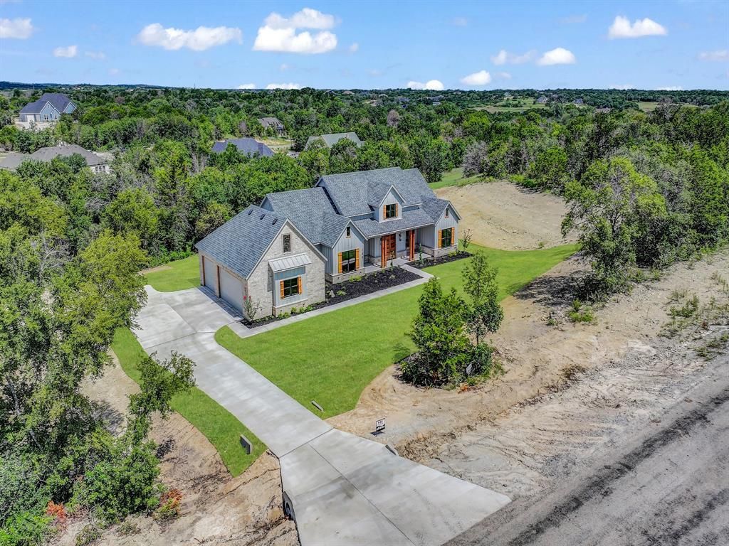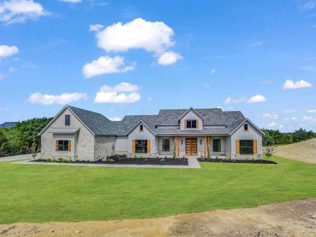 **ASK ABOUT BUILDER INCENTIVES** Gorgeous MHB Custom Homes build on 2 acres in beautiful Windmill Creeks! 4 bed 3.5 bath Modern Farmhouse inspired home. No HOA. Build a guest home or a shop. Horses, chickens, and goats allowed! Open concept living area with a gas log fireplace, built-in cabinets, pine mantle & floating shelves, REAL hand-scraped hardwood floors, dining room with shiplap paneling, and a vaulted ceiling with stained pine wood beam. Eat-in kitchen offers large island with breakfast bar, farm sink, custom cabinets to the ceiling, pendant lighting, under cabinet lighting, gas cook top, double ovens, and quartz countertops! Walk-in butler’s pantry with built in cabinets, wine rack, and quartz top. Dedicated office with barn door & wood floors. Relax in the roomy primary bedroom featuring wood floors, tray ceiling with pine beams, an ensuite with split vanities, shiplap accent walls, over-sized linen closet, huge walk-in shower, free standing tub, and spacious primary closet with a convenient door to the laundry room. SPLIT BEDROOMS: Three large secondary bedrooms are separate from primary suite offering privacy for all! EVERY BEDROOM in the home has an attached bathroom! Bedrooms 2 & 3 share a Jack & Jill bath with separate vanities. Bedroom 4 has its own bathroom making it perfect for a MIL suite or guest room. This home is PACKED WITH EXTRAS to include soft close cabinets, soft water system, reverse osmosis unit, up lights, 120 gallon propane tank that conveys, OVERSIZED 3 car garage, 6” gutters, spray foam insulation, two electric water heaters, variable-speed energy star rated HVAC system, LED disc lights, & numerous other energy efficient features. Landscaping package includes Bermuda sod, irrigation zones, and mulched planters with native plants. See Supplements for other Features & Amenities. Weatherford address conveniently located in-between Weatherford, Azle, and Springtown with a 30 minute commute to Fort Worth.