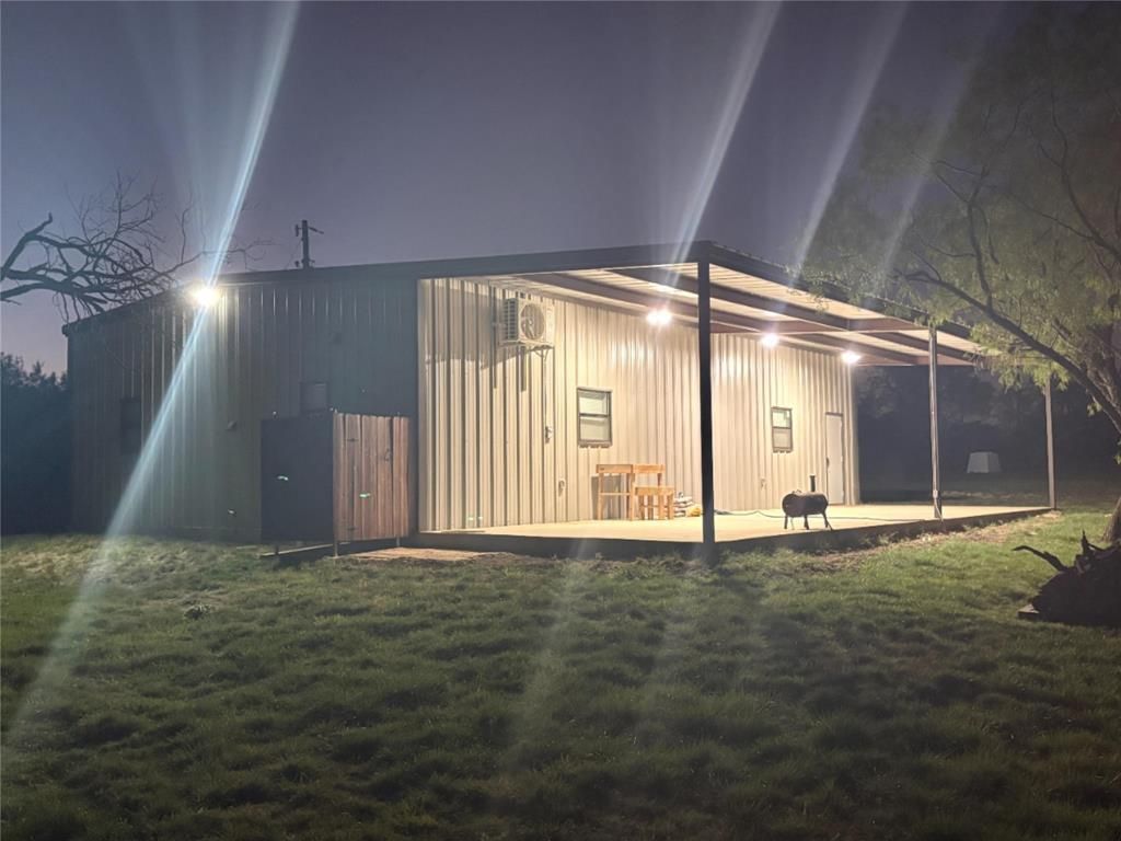 Discover 10.01 acres of serene country living in this thoughtfully crafted, versatile barndominium, offering the perfect blend of rustic charm and modern convenience. With a total of 1,500 sq ft under roof, the space includes a cozy 750 sq ft living area and a versatile 750 sq ft shop- ideal for hobbies, storage, or future expansion. Step inside to an open-concept layout featuring a spacious living area, kitchenette, and a full bathroom with washer & dryer connections already in place. The workshop provides ample room for vehicles, tools, and weekend projects. Inside the shop, cabinets have been added to provide additional storage and organization. The building offers an attached 15 ft wide by 50 ft long covered patio. Outside, enjoy evenings around the newly added fire pit, complete with electricity extended to the area, perfect for entertaining or relaxing under the stars. An outdoor shower adds convenience after a long day outdoors. Designed with future growth in mind, the property includes a water well, electric service, and a septic system sized to support additional structures or upgrades. Whether you're dreaming of a larger homestead or simply want room to grow, the infrastructure is ready. Enjoy peaceful mornings and quiet evenings surrounded by native wildlife including turkey, deer, and wild hogs. This property offers a tranquil escape from the hustle, perfect for weekend getaways or full-time country living. Situated in the Evant ISD, you're just a short drive from Evant, Hamilton, Lampasas, Goldthwaite, and Gatesville. Larger cities like Waco, Stephenville, Temple, Killeen, and Brownwood are all within an hour’s reach- giving you the best of both worlds. With essential infrastructure in place, thoughtful upgrades already completed, abundant wildlife at your doorstep, and a location that balances rural tranquility with access to thriving communities, this property is more than a place to live- it's a foundation for whatever future you envision.