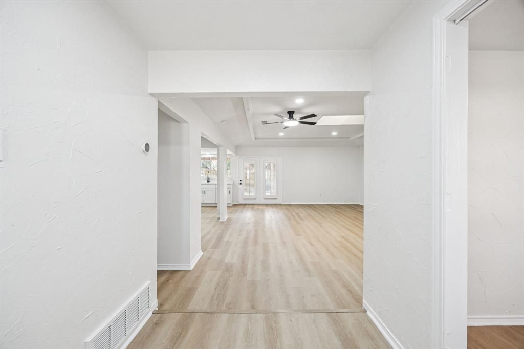 Completely renovated and beautiful, this 3 bedroom, 2 bath home offers modern style and peace of mind in a quiet Rowlett neighborhood just steps away from Lake Ray Hubbard. The fully updated kitchen includes brand new cabinetry, beautiful quartz countertops and opens to the spacious living room featuring a fireplace with custom cedar-wrapped mantle. Both bathrooms were taken to the studs and rebuilt with new tile surrounds, modern vanities, lighting and fixtures throughout. The primary suite features a newly designed walk-in shower and a bright elevated feel. Brand new Trane HVAC system installed and sewer lines were replaced with PVC. Located just two blocks from the lake and close to parks, trails, boat ramps, shopping and dining, this home offers style, comfort and low maintenance living!