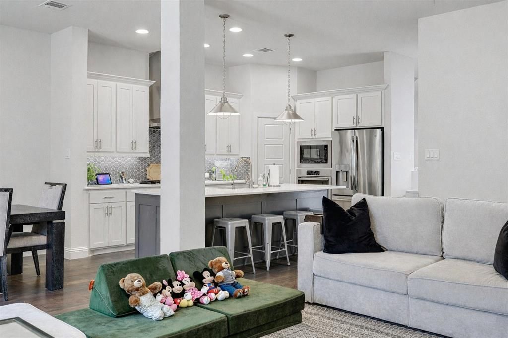 Welcome to this beautifully maintained and thoughtfully designed three-story residence that perfectly blends style, comfort, and everyday functionality. From the moment you arrive, the striking stone and stucco exterior and gated front entry create an inviting first impression with exceptional curb appeal. Step inside to discover a light-filled, open layout with clean lines and contemporary finishes throughout. The home offers multiple spacious living areas, including an expansive upstairs bonus room — ideal for a media space, game room, home gym, or additional lounge area.The primary suite is a true retreat, featuring a spa-inspired bathroom with a soaking tub, oversized glass walk-in shower, dual vanities, and modern tile work. Generous walk-in closets with built-in shelving provide ample storage and organization. Secondary bedrooms are bright and well-proportioned, while additional bathrooms showcase updated finishes and cohesive design. An upstairs office nook with large windows offers the perfect work-from-home setup with abundant natural light. Enjoy the convenience of an upstairs laundry room located near the bedrooms for effortless daily living. Outside, the private gated front yard and landscaped walkway provide charm and added privacy — a rare and desirable feature.With its modern aesthetic, versatile living spaces, and thoughtful layout, this home offers both comfort and elevated design in one exceptional package. Refrigerator conveys with home and charge port for EV cars.