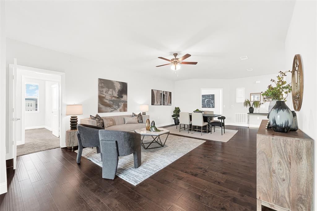 Welcome Home! Experience effortless, lock-and-leave living in the most desirable Wiltshire floor plan, ideally situated on the top floor of The Gatherings at Twin Creeks, Allen’s premier 55+ active adult condominium community. Lightly lived in, this residence is truly move-in ready and feels nearly brand new. Designed with both comfort & entertaining in mind, the open-concept layout showcases warm hardwood floors, premium finishes, and a seamless flow between the living, dining & kitchen areas — creating an inviting space to gather with family & friends. The well-appointed kitchen features SS appliances, generous counter space, abundant cabinetry, & a spacious walk-in pantry. The third bedroom easily converts to a private study, home office, or hobby space. Enjoy the rare benefit of a private, extended-length interior garage with direct building access, and a separate private storage unit, both of which make this unit one of the most desirable in the entire complex. Life at The Gatherings is about connection & convenience. Residents enjoy a resort-style pool, fitness center, pickleball courts, clubhouse & party room, grilling stations, putting green, community garden, picnic area with fire pit, dog park, valet trash service, secured building access, elevators, and newly added EV charging stations. A full calendar of social events & activities makes it easy to build lasting friendships. Ideally located with easy access to the Allen Trail System, Allen Event Center, Allen Premium Outlets, Twin Creeks Village, Watters Creek, and local golf, plus convenient access to major highways, shopping & dining. Original owner hates to leave, and invested in the over-sized garage AND storage unit, making this until one of the most desirable at The Gatherings. HOA fee covers landscaping, hazard insurance & maintenance of common areas — delivering a truly turnkey, worry-free lifestyle. Also, there is a full-time HOA concierge on site, in this building, Building G.