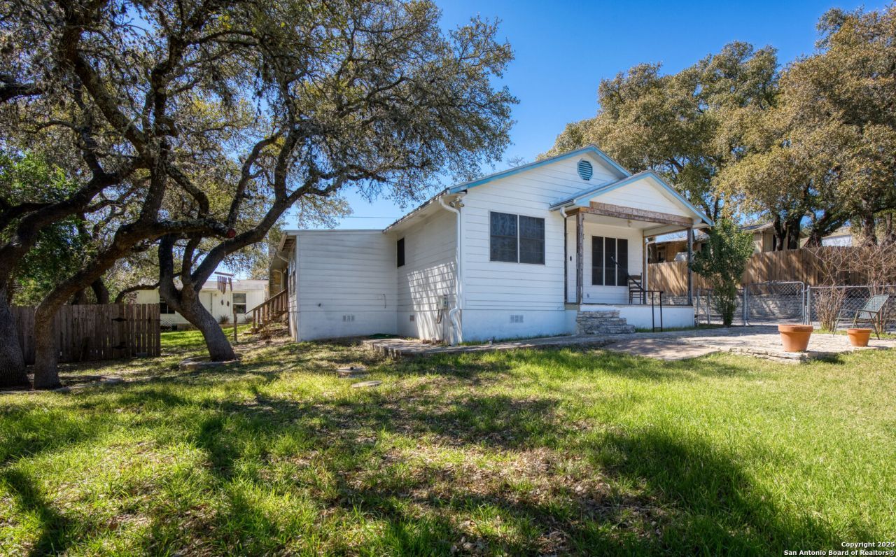 Adorable home located in established subdivision with access to walking and horseback trails leading to the shores of Canyon Lake in the beautiful Texas Hill Country! Community pool w/ family area as well! This home makes a great full time residence or it could be an incredible short term rental. Investors dream home with many remodel features already complete. Very unique design! Fireplace in master bedroom boast lovely stonework and gives you a cozy, comfortable vibe as soon as you enter the room. Third bedroom currently used as a craft room with its own entrance to back deck! 2 nice size buildings that could easily be transformed into additional rooms for guest, making it a great candidate for a vacation rental, in addition to huge garage. 2nd kitchen/bar area with door to the outdoor areas. This home is a must see and will not last long! Located on the north side of Canyon Lake, short drive to The Devils Backbone scenic route leading to Wimberley and many, many site seeing and park locations in the Texas Hill Country!