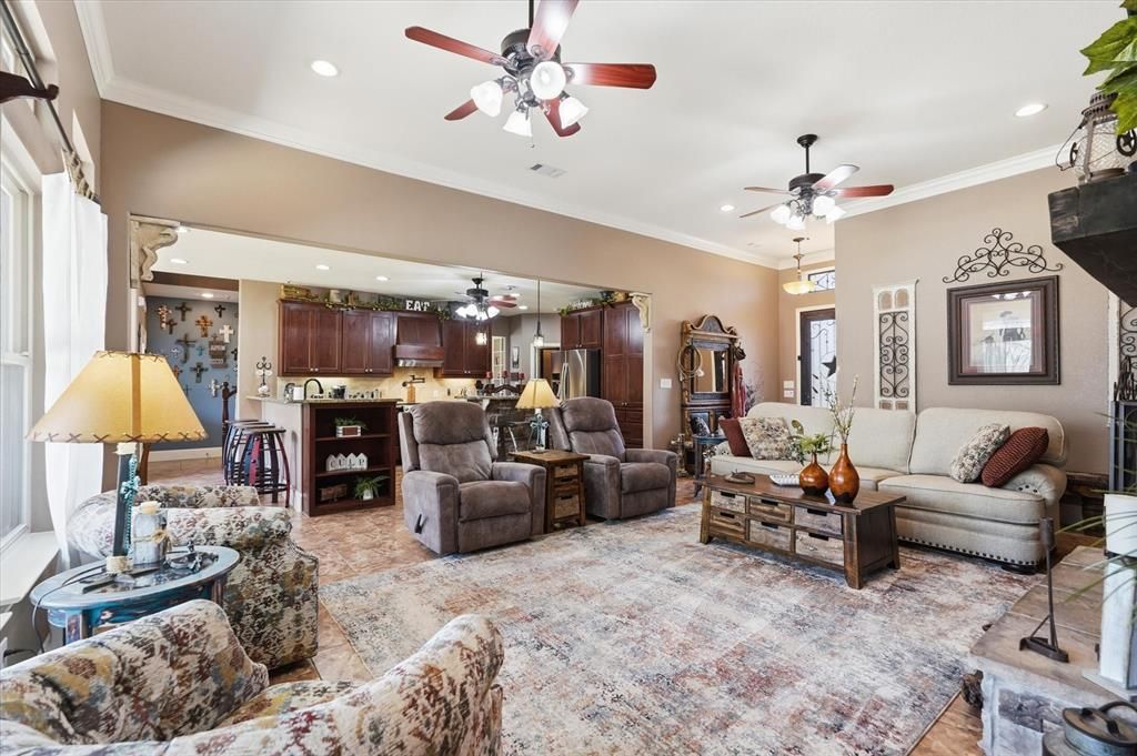 Nestled on a sprawling 1.48 acre lot, this beautifully upgraded home offers the perfect blend of space, comfort, and rustic style. Situated on a quiet cul-de-sac in the sought-after Hidden Lakes Ranch community just north of Gunter, this property provides a peaceful setting with room to roam. Extensively updated home featuring fresh interior paint, new carpet, and updated flooring in office. Spacious living room with stunning stone accent wall. Upgraded kitchen with vented hood, updated faucets, new garbage disposal, and appliances included (refrigerator with dual ice makers; oven with convection, air fryer, and warming drawer). Primary suite offers updated bath with new sinks and privacy glass shower. Jack-and-Jill bath upgraded with granite, backsplash, and tile flooring. Game room features upgraded woodwork, pool table conveys.Exterior boasts slate patio with seating walls and lighting, wrought iron fencing with multiple gates, added flower beds, and expanded concrete driveway with additional parking. 360 sq ft storage building with electric, roll-up door, and ramp, ideal for ATV or equipment. Additional highlights include sprinkler system (4 zones), coated garage floors, insulated garage door, Bluetooth opener with cedar trim, 220V in garage, and two high-capacity water heaters. Major upgrade: Brand new HVAC system (Feb 2026) with 10-year warranty. This home is located in a neighborhood featuring private lakes and oversized lots, this home offers a rare combination of luxury, space and tranquility. A MUST SEE!!