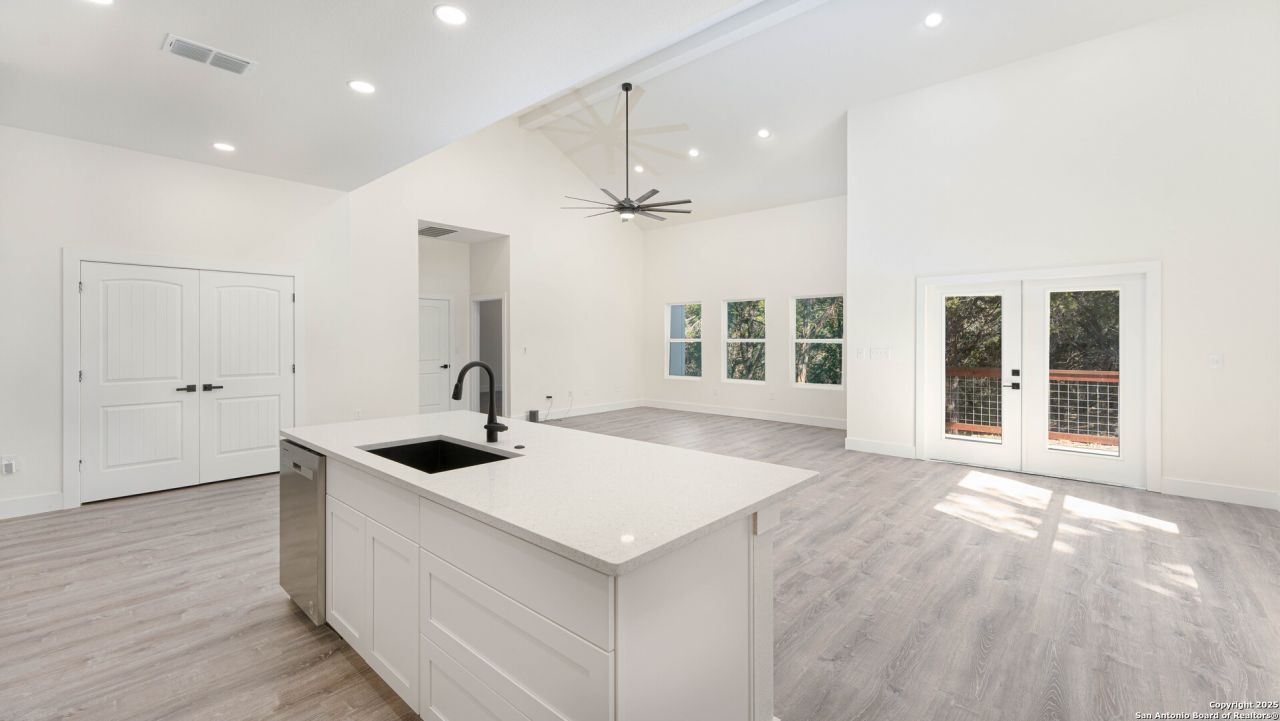 Step into this stunning custom new construction home, thoughtfully designed to offer both comfort and versatility. Featuring a flexible floor plan, this property can be tailored to your needs as a 4-bedroom home or a 3-bedroom home with a spacious flex room-perfect for a den or a large office. The home boasts luxurious plank vinyl flooring throughout (no carpet), elegant white cabinets, and soaring vaulted ceilings with fans in every room for year-round comfort. The longer driveway adds extra parking convenience, while the wood panel ceilings on the front and back patios provide rustic charm. A spacious side yard enhances the outdoor appeal, making this home an exceptional blend of modern living and timeless design. Dont miss your opportunity to own this Canyon Lake gem!