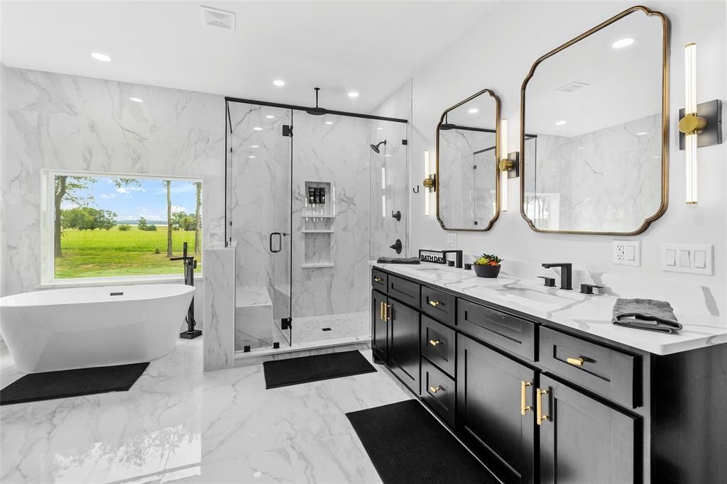 Elevated Lake Living Near the Water's Edge of Lake Bob Sandlin. Completed in 2024, this meticulously crafted brick home is just off the water's edge on .584 acre. From the outdoor living area, enjoy peaceful lake views, sip wine from the hot tub and enjoy quiet conversation around the fire pit. There are 2 well-appointed primary suites with the main primary suite privately situated including a luxurious spa-inspired bath featuring sleek marble flooring, an expansive walk-in shower and a freestanding soaking tub with large picture window overlooking the lake. An electric fireplace adds warmth and atmosphere for the ultimate serenity experience. Gorgeous, wood-look waterproof engineered flooring runs throughout. The kitchen is bold and polished, appointed with crisp quartz countertops, a dramatic waterfall island, two-toned cabinetry, and undulating white herringbone backsplash. Premium stainless-steel appliances, along with designer lighting and hardware, complete the space. Large butler’s pantry with additional cabinetry, floating shelves, and butcher block counters. The open-concept living and dining areas are designed to stand out, highlighted by custom accent walls and a sleek electric fireplace. A wall of windows draws in natural light while framing tranquil lake views from the back of the home. The second primary suite is generously sized and includes an ensuite bath with a walk-in shower highlighting floor-to-ceiling geometric tiles. Two additional guest bedrooms are oversized and adaptable, easily accommodating multiple beds, and share a full bath with a tub shower combination. Currently operating as a short-term rental, this property offers immediate income potential. All furnishings and appliances convey, creating a fully turnkey opportunity for continued rental use or seamless personal enjoyment. Access to boating, fishing, and open water is close and convenient. When will you enjoy the next breathtaking sunset in this spectacular home?