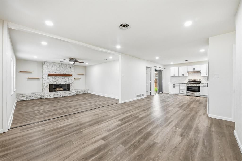 FULLY UPDATED!!! You will LOVE this home. Move-in-ready 3-bedroom, 2-bathroom home in Hurst Park sits on a spacious, oversized corner lot and includes a large shed in the backyard. Fully reimagined, the interior features new durable wood plank flooring and new paint throughout, brand-new cabinetry, and high-end granite countertops. The home includes a full suite of new stainless steel appliances, complemented by modern lighting, new fans, updated hardware, a new water heater, and new HVAC. Relax in the comfortable living room anchored by a classic stone fireplace. A standout feature is the oversized utility room with an attached second bathroom, which provides excellent functional space. Finished with 2-inch faux wood blinds and fresh updates from top to bottom. This is a family-friendly home offering peace of mind of like-new construction in a fabulous Hurst neighborhood, it's amazing!