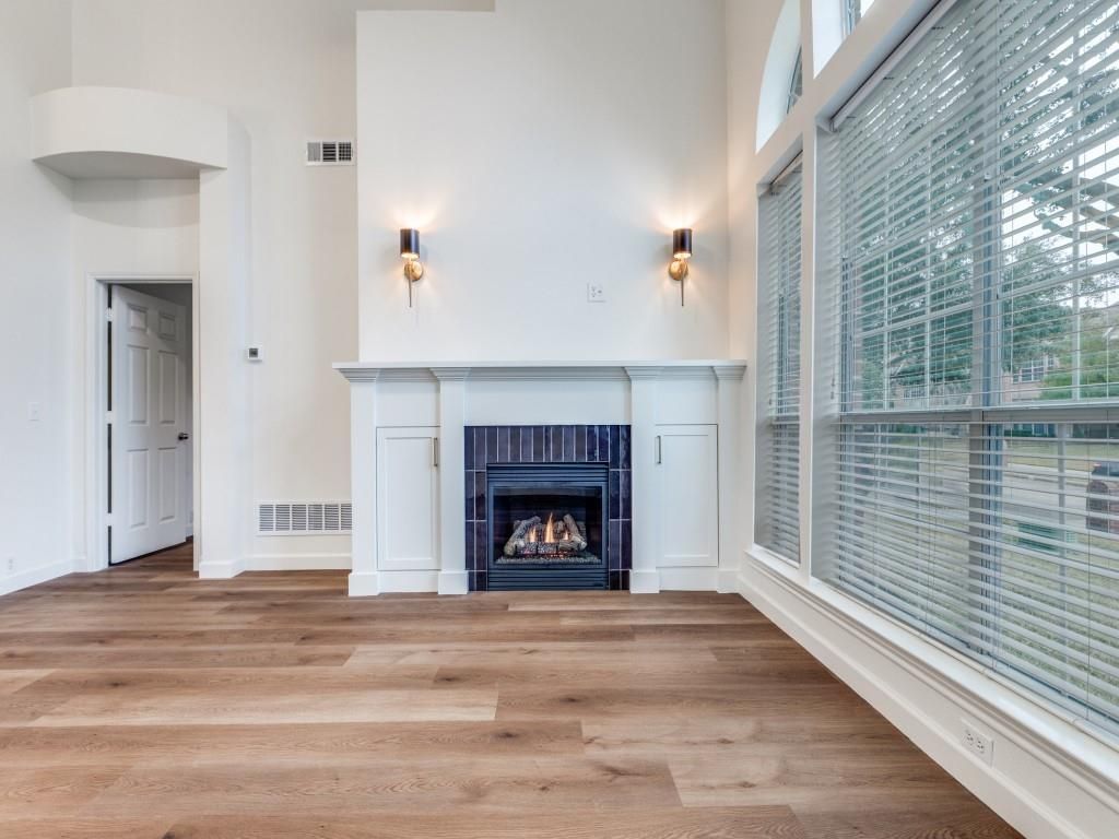 Completely remodeled up-scale duplex home in highly regarded Lakes of Preston Vineyards. This unit is 2033 sq ft and features 24 ft ceilings in the main living area, large windows, a beautiful new modern staircase, LVP flooring downstairs, all updated lighting and a gas fireplace flanked with new built-in cabinets for storage. The large primary suite includes all new spa like bathroom with free-standing tub, separate shower with ample product niche, new cabinets, dual sinks, and large walk-in closet. Kitchen features new quartz countertops with beautiful hand-made zellige tile backsplash, oversized sink, eat-in kitchen, all new appliances and pantry. Up stairs boasts 2 bedrooms, large living area, ALL with new ceiling fans and new carpet. Up stairs bath includes bath and shower combo, dual sinks, new cabinets and quartz counter tops plus new floors. The home also has 2 car garage with direct home entry, full sprinkler system, patio. All new plumbing and fixtures. All this within Frisco schools and easy access to shopping and restaurants. Owner pays HOA fee which includes front lawn maintenance. This is a no smoking, no pets property. All information is deemed reliable but not guaranteed. Tenant should verify schools and all other information. Two year lease is required.