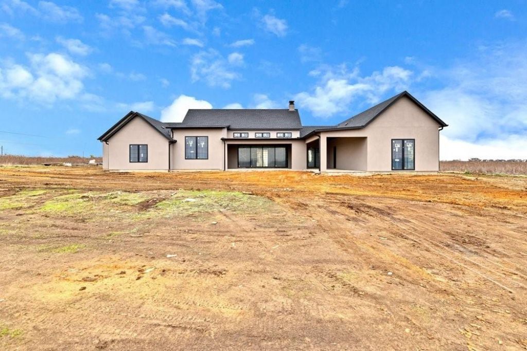 Experience the pinnacle of contemporary design in this new construction, custom-built modern stucco home offering approximately 4,900 sq ft of superior craftsmanship and refined elegance. Thoughtfully designed with clean architectural lines, expansive living spaces, and the highest level of finish-out, this property delivers a lifestyle of luxury. A dramatic single-axle pivot front door sets the tone as you enter a light-filled interior highlighted by soaring ceilings and an impressive huge sliding glass wall that creates a seamless indoor–outdoor connection. Every inch of the home showcases premium, fully custom finish-outs—designer lighting, millwork, fixtures, cabinetry, and architectural details that elevate each space. This exceptional residence features 4 spacious bedrooms, each with its own en-suite bath, plus a total of 5.5 bathrooms crafted with high-end materials. The chef’s kitchen serves as a focal point, boasting custom cabinetry, luxury stone selections, and a layout designed for both everyday living and upscale entertaining. Upstairs, enjoy a dedicated movie theater along with a generous bonus room featuring a full bath, perfect for a private guest suite, game room, or home studio. Situated on 2.5 acres in the heart of Krum this home offers a rare blend of modern luxury and wide-open space—an ideal retreat with room to breathe, entertain, and create. An exceptional statement of modern living. A masterpiece of custom construction. Welcome home.