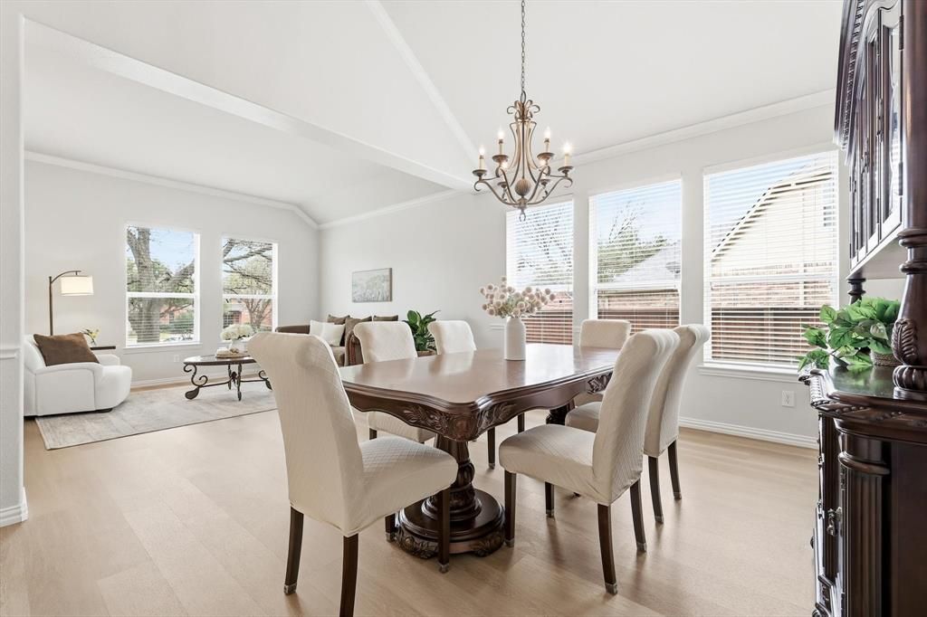 This stylish and functional home is ready for move in. Fresh paint and new floors throughout enhance the incredible value in this 5 bedroom 4 bath home in the award winning golf community of Lantana. The first thing you'll notice is just how much space there is in every room! The dedicated home office is no exception. With room for 2-3 desks and floor to ceiling built ins, you'll never need to commute. Formal living and dining rooms allow for entertaining, large holiday gathering spaces, or a music room. The main floor guest room is tucked away from the primary bedroom and has a full bath attached. And just wait until you see the kitchen! There you'll find wide open spaces and tons of cabinets and counter space. Flowing into the living room you'll love the natural light and ample space for relaxing. Out back you'll find a custom pool built for a friendly volleyball game on one side with a deeper side and a slide on the other. And the best part? You don't have to sacrifice yard space. The game room upstairs is perfect for movie nights, exercise space, or sleepovers and it has built ins to store books, collector items, or toys. With 3 bedrooms and 2 baths upstairs everyone can have their own space to relax. You can even ditch your gym membership because Lantana has 2 fully stocked fitness centers, tennis, basketball, and pickleball courts, and miles of hike and bike trails. Community amenities and convenience plus fresh, updated paint and floors with a main floor guest room and a pool AND a large yard makes this home the place you want to be!