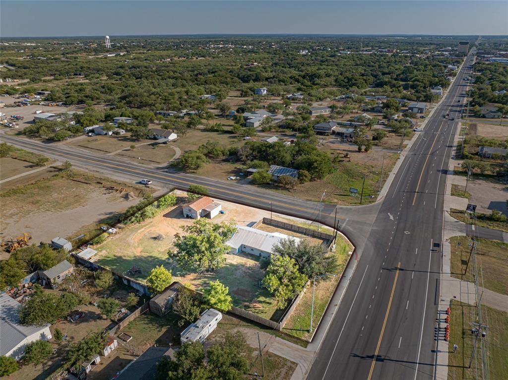 Desirable location in Breckenridge, TX, on the corner of Highway 183 N and FM 287. This versatile property sits on 0.57 acres, spanning four city lots, and includes a 1,827 sq. ft. home with three bedrooms, two bathrooms, plus a 560 sq. ft. workshop. Inside, you’ll find a large kitchen and dining area, a spacious living room, and nicely sized bedrooms. A bonus room offers the perfect space for an office or second living area, and the carport provides convenient access to the mudroom-laundry room. Several updates were completed in 2023, including new windows, flooring, and siding. Zoned for both commercial and residential use, this property offers endless potential—whether as a comfortable home, a commercial headquarters, or a space with room for additional outbuildings. The possibilities are truly limitless.