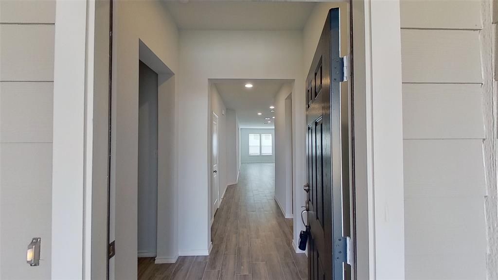 Charming 3-bedroom, 2-bath home featuring a spacious open-concept floor plan designed for comfortable living and entertaining. The kitchen offers stainless steel appliances, granite countertops, a large center island, and an oversized walk-in pantry with abundant storage. Wood-look tile flooring enhances the main living areas, while the bedrooms feature soft carpeting for added comfort.The primary suite includes a relaxing garden tub, separate walk-in shower, and a generously sized walk-in closet. Outside, enjoy a nicely sized yard enclosed by an attractive, low-maintenance white fence. Situated on a desirable corner lot directly across from a playground and park area, this home offers both convenience and outdoor enjoyment.Located in Aubrey and zoned for highly rated Denton ISD schools.