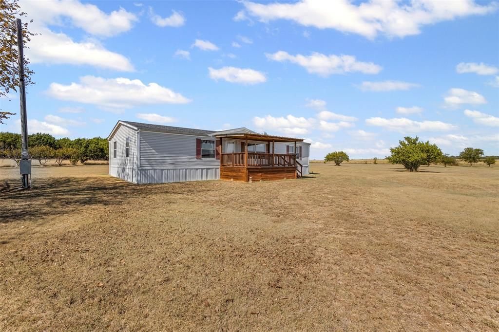 Welcome to your peaceful country retreat! Nestled on a sprawling 13 fully fenced acres, this charming 4-bedroom, 2-bathroom home offers the perfect blend of tranquility and convenience, just minutes from Cleburne State Park. The inviting open floor plan features a cozy living area, a well-appointed kitchen with abundant cabinetry, and a bright dining space that opens to the covered back patio—ideal for enjoying the wide-open views. The spacious primary suite includes a private ensuite bath, while three additional bedrooms offer flexibility for guests, family, or a home office. Outside, you’ll find multiple fruit trees, a seasonal creek, and plenty of room for outdoor activities or livestock, creating a true country haven. Whether you’re seeking a peaceful homestead, a weekend getaway, or a property to live in while you build your dream home, this land offers endless possibilities. Recent improvements include a new roof, new siding and skirting, updated plumbing beneath the home, and a leveled foundation—all completed within the last two to three years. Additional highlights include a 500-foot well and available fiber internet. Don’t miss the opportunity to own your own slice of the Texas countryside where peace, space, and potential abound.