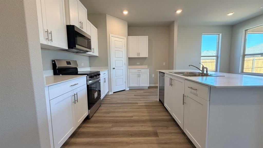 Available for a quick Move-in!! Gorgeous new D.R. Horton home in the Lankford Farms community located in Cleburne and Cleburne ISD! Complete and Move-in Ready! This thoughtfully designed single-story Starkville floorplan Elevation D, offers 4 bedrooms, 2 bathrooms, and a 2-car garage with an open-concept layout that connects the family room, dining area, and kitchen for a functional and inviting living space. The kitchen is positioned at the heart of the home and includes quartz countertops, 36” upper cabinets, stainless steel appliances, electric range, stainless steel drop-in sink, a center island, and a walk-in pantry—designed for both convenience and everyday comfort. The private primary suite offers an en-suite bath with dual quartz vanities, an oversized shower, and a walk-in closet located off the bathroom, providing an ideal retreat. Quartz vanity tops are also included in the secondary bathroom, while luxury vinyl plank flooring is installed throughout all main areas and wet zones for durability and style. Constructed with energy-efficient features and equipped with America’s Smart Home Technology, this home also includes exterior upgrades such as a covered back patio, full sod, sprinkler system, privacy fencing, and landscaping. The John Warren Sports Complex is nearby, offering opportunities for outdoor recreation and sports enthusiasts. Historic downtown Cleburne is less than two miles away, providing convenient access to unique shops, restaurants, and cultural attractions. Lake Pat Cleburne is only a 10-minute drive, perfect for boating, fishing, and swimming.