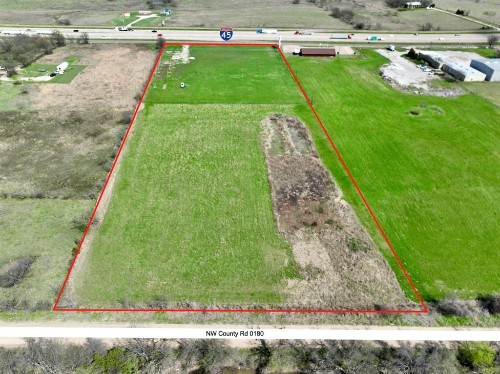 An attractive location for a business that requires high visibility and easy access to a major thoroughfare. Dual access to this property from both I-45 and County Road 0180. Located 45 minutes south of Dallas and two hours north of Houston. 8.06 acres of unimproved commercial land with over 350 feet of visibible road frontage. There is access to water service and electrical services, however no sewer is available and an on-site septic sewer system is required for building. No floodplain or drainage easements.