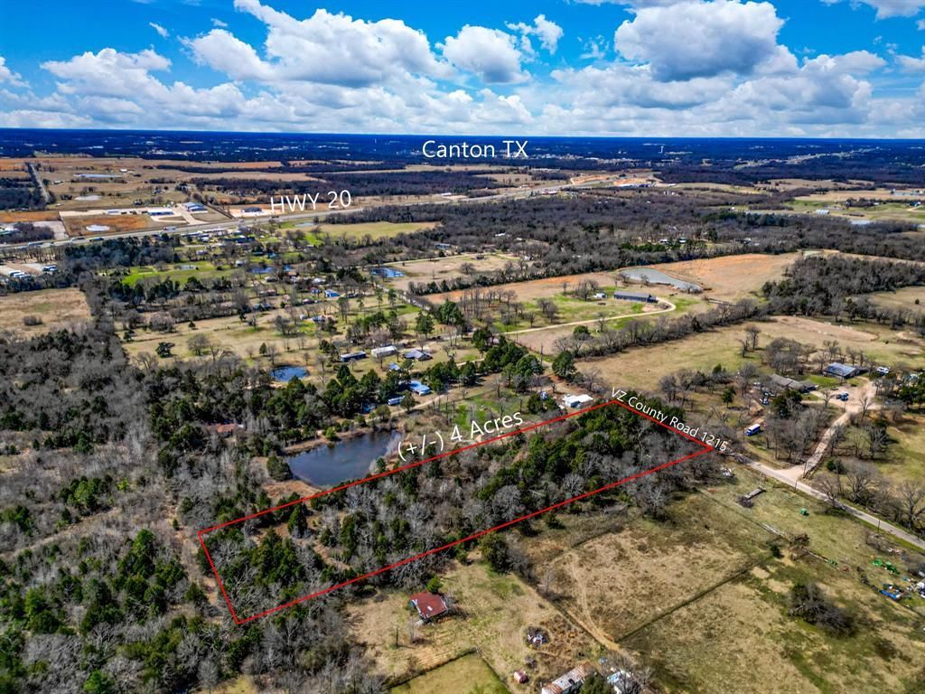 Offering 4 (+ or -) acres located a short distance and with easy access to I-20 and Canton ISD. This is a rectangle shaped piece of property and offers a small stock tank and plenty of trees for privacy. The property will require a well, septic and electricty is located at the road. This property is approximately 200 l.f. wide at the road and approximately 950 l.f. deep. Would make a great homesite for a site built home, barndaminium or manufactured home. Site is heavily wooded.